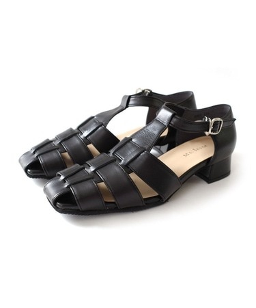 【日本製/ゴム仕様】本革ストラップスクエアトゥサンダル