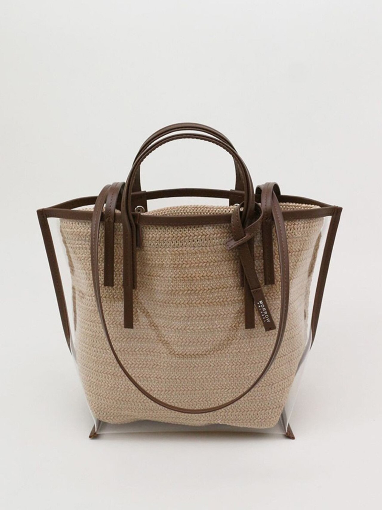 ナチュラル素材のバッグはタウンユースにも合わせやすく、夏のスタイリングのポイントに。