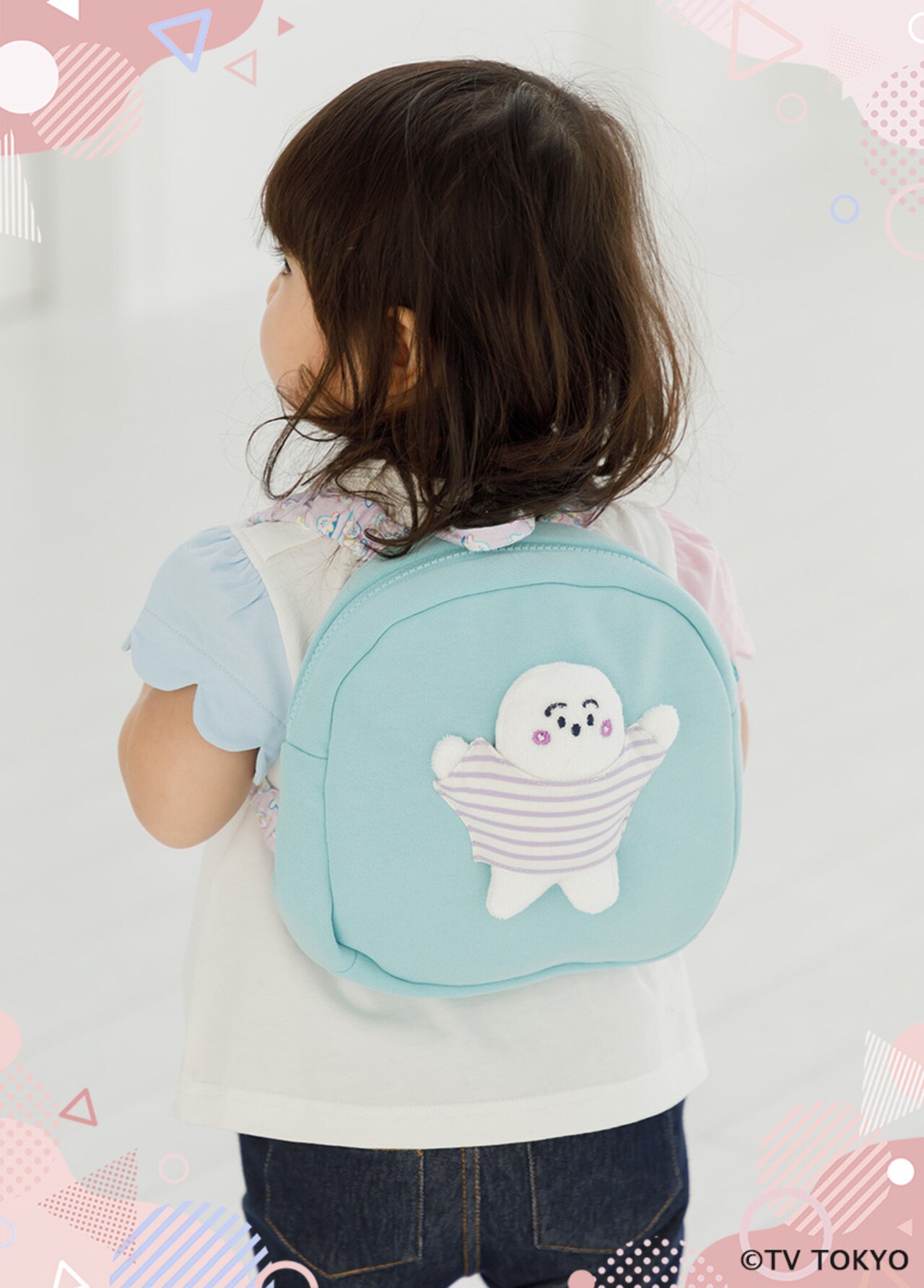 ボーダー柄のお洋服を着たぷしゅぷしゅがリュックの正面についたデザイン♪