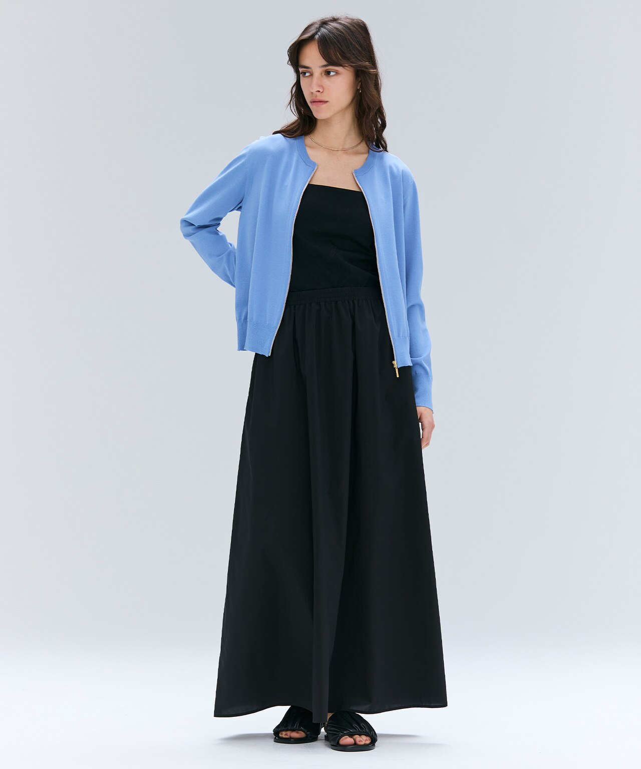 纏う空気まで涼やか。風をはらむライトタフタ