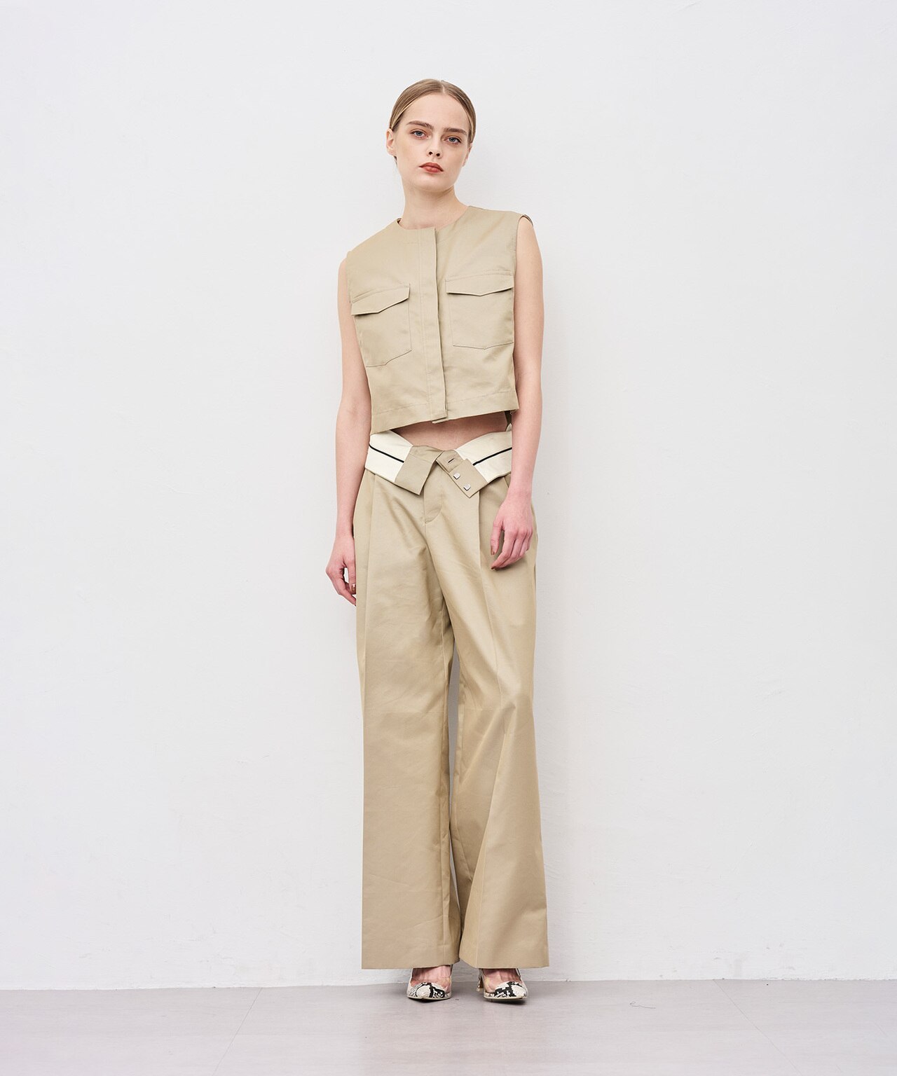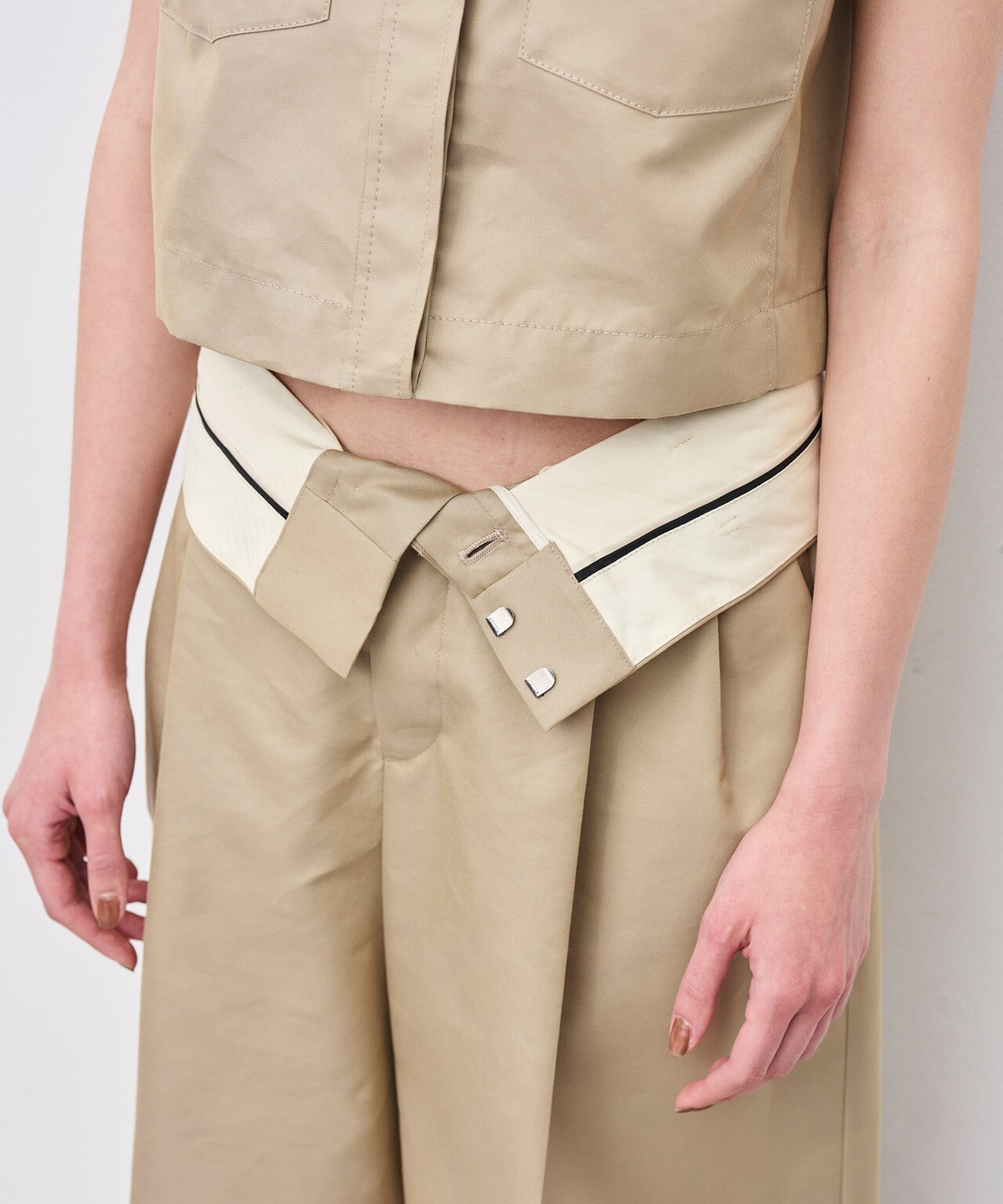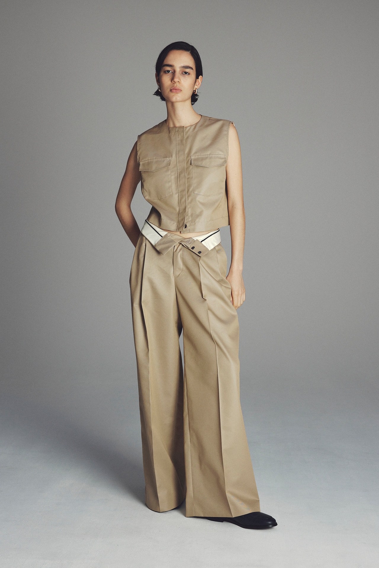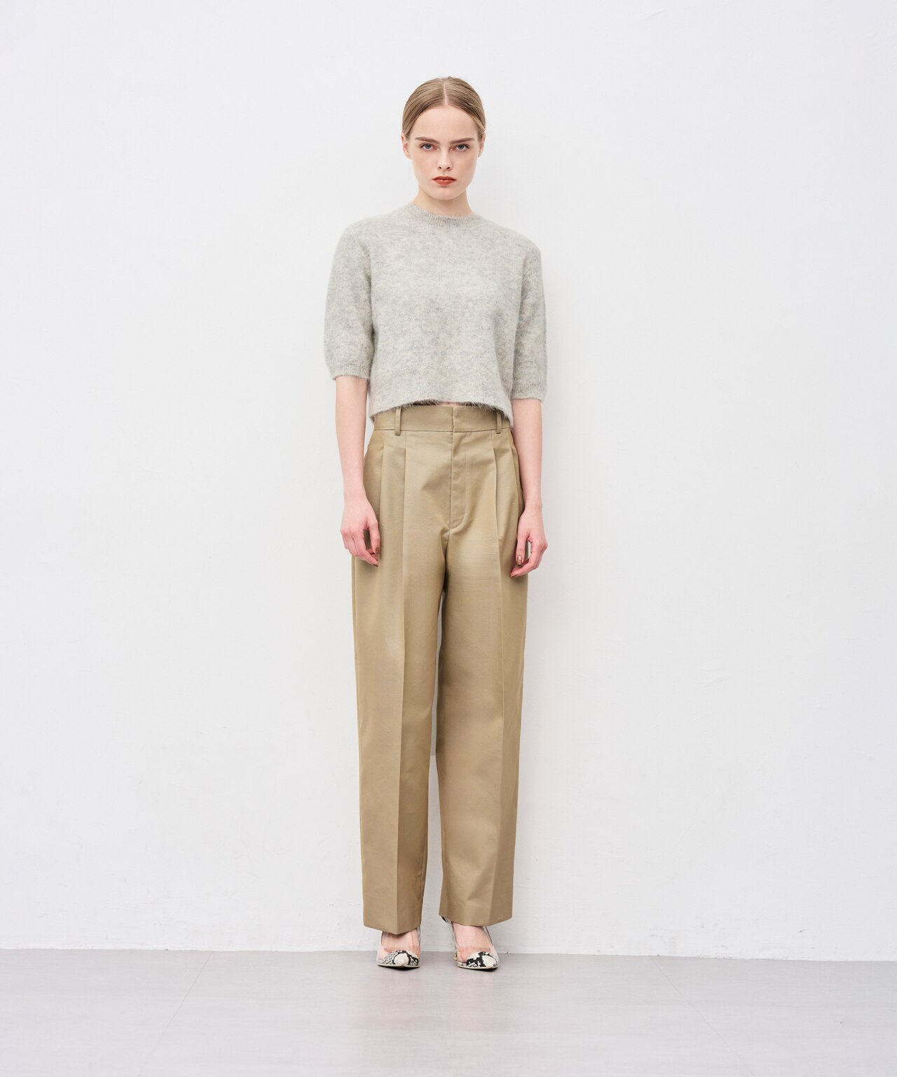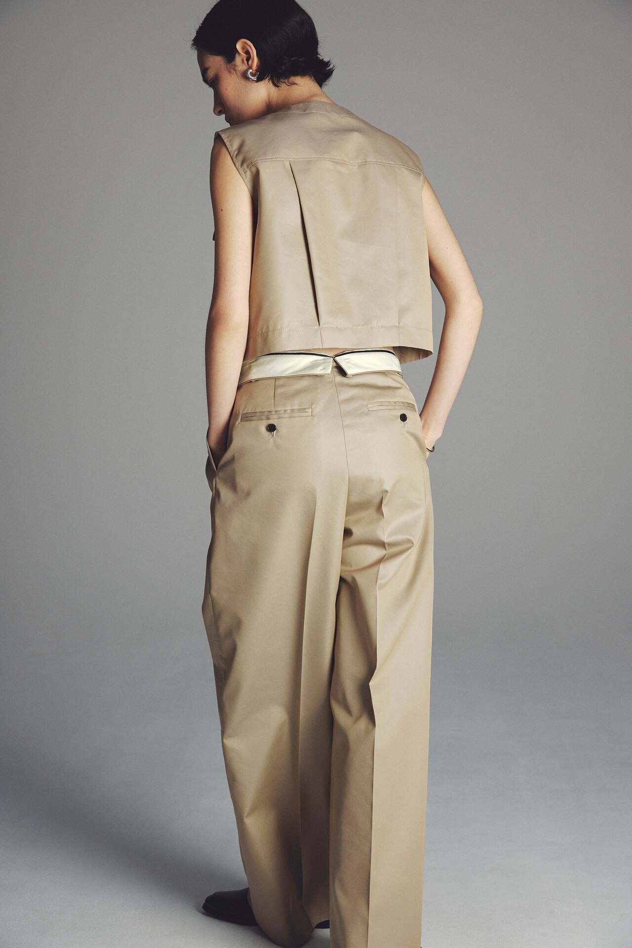 適度なハリ感ときめ細やかな光沢感がカジュアル過ぎないキレイ目チノ素材となっています。