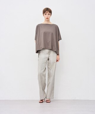 インドの超長綿を72/2サイロの番手に紡績し追撚+ガス焼きを施した生地屋オリジナル原料を使用した素材です。ガス焼きによって不要な毛羽を無くすことで洗濯しても毛羽立ちがしにくく、清涼感、接触冷感もあります。またノンシルケットケットで仕上げているため、きれいめでありながらもナチュラルな風合いに仕上げた素材です。