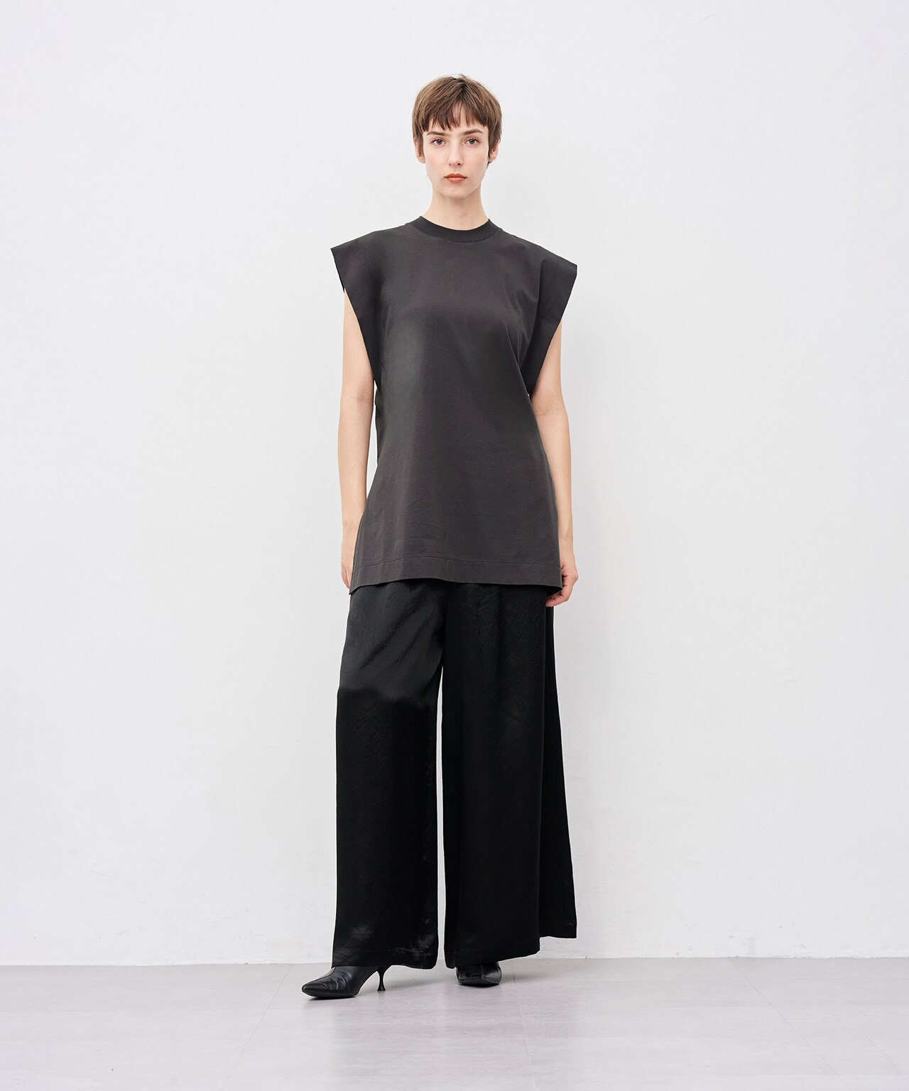 TR(ポリエステル/レーヨン)繊維自体は手触りが柔らかく、スパンデックスを加えることで優れた弾力性があり、繊細で滑らかな風合いに仕上げています。