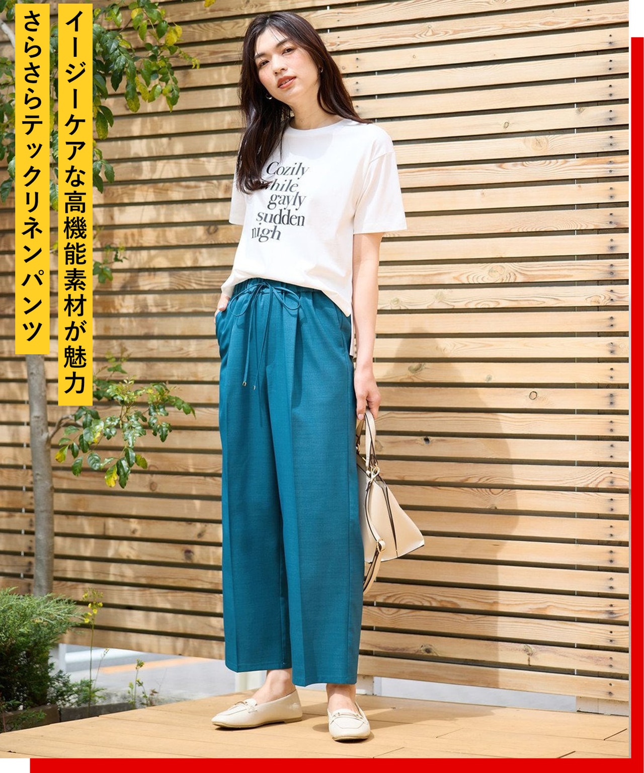 - 【新色追加/洗濯機可/ウエストゴム/接触冷感/UVケア】清涼リラックスハイウエストパンツ/ANY