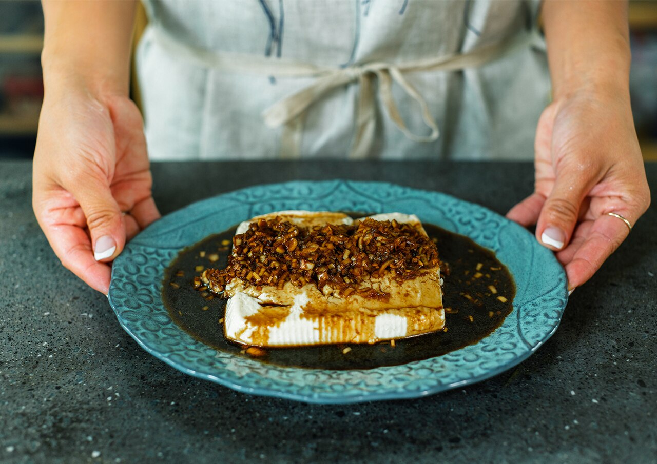 よだれ鶏ならぬ、よだれ豆腐。にんにくや生姜が体を内側から温め、食欲が落ちがちな日にもスルッと食べられる、石岡さんの夏の定番メニューです。