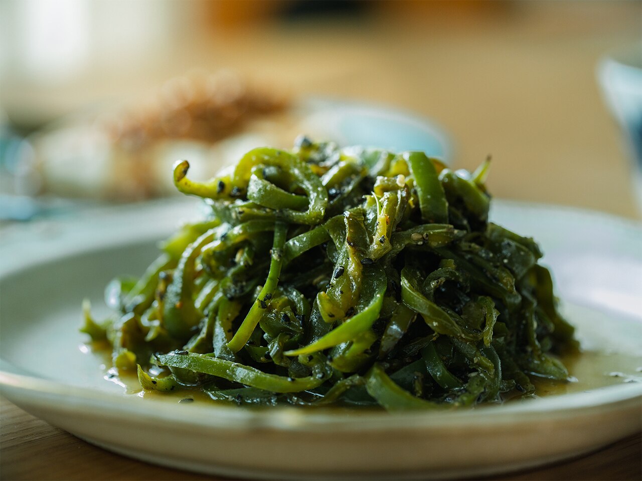 ただピーマンを焼いて、ポン酢と味噌で味付けするだけ。なのに驚くほど美味しくて、気づけばバケツ一杯分食べてしまいそうになる。そんな、石岡さんが昔ご近所のお肉屋さんから教わったという思い出のレシピです。