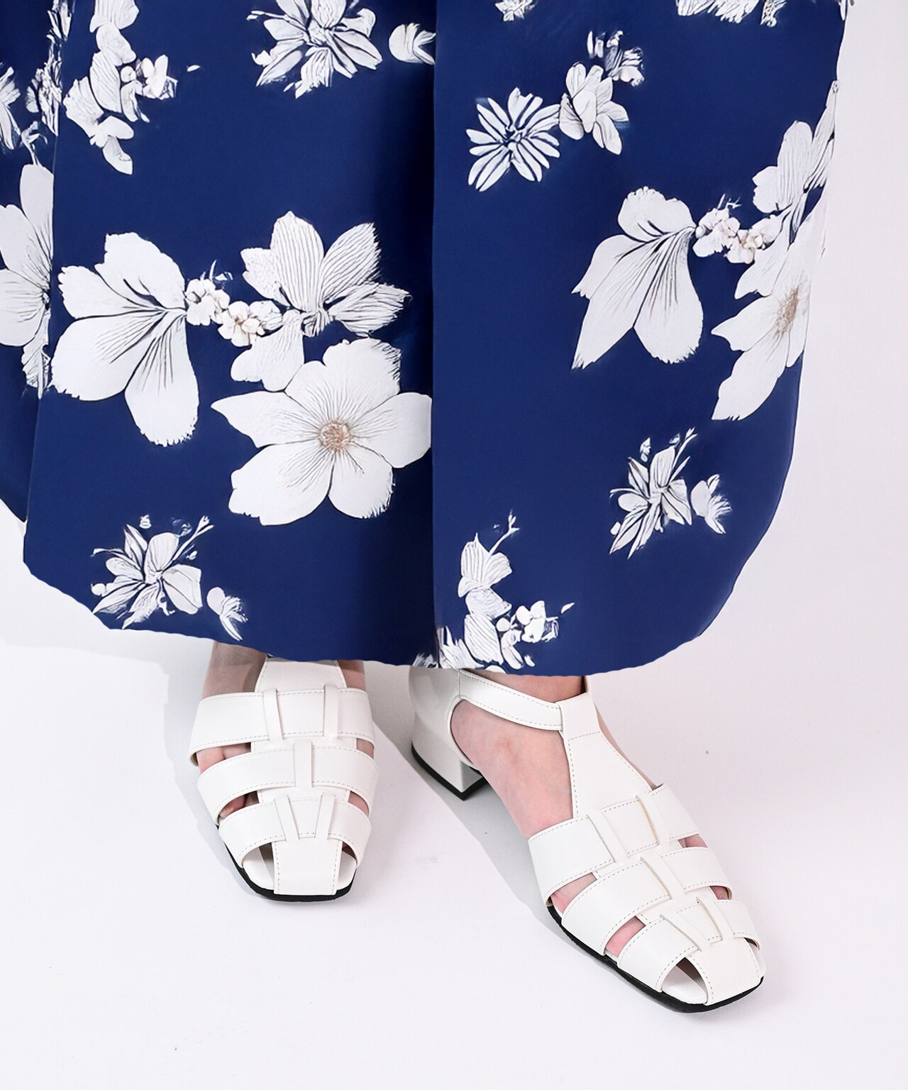 広めのスクエアトゥとチャンキーヒールがモードなアクセントを添え、浴衣に都会的な抜け感をプラス。