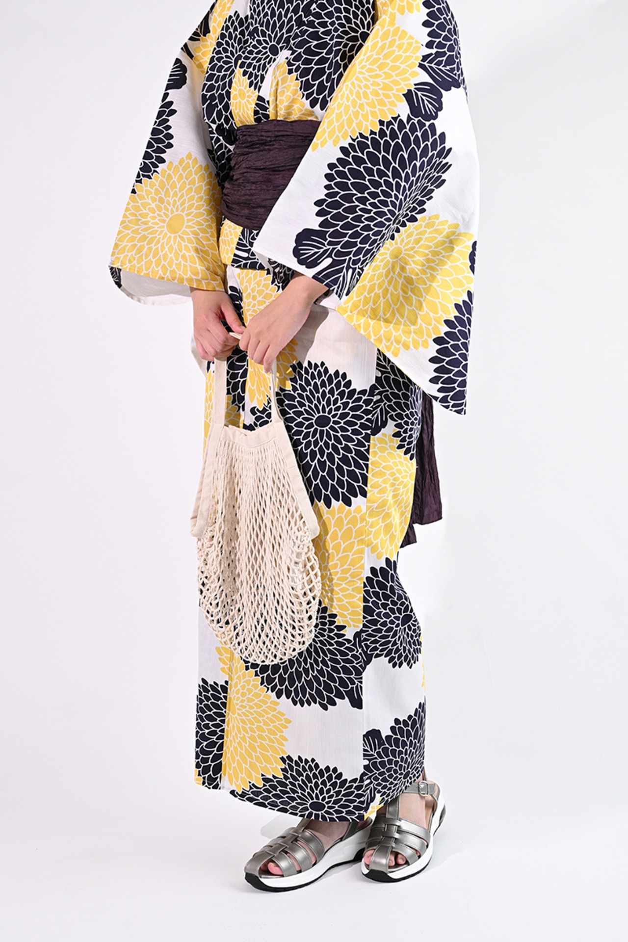足元にボリュームが出ることで、浴衣とのバランスも取りやすく、全身がスラッと見えるのも嬉しいポイント。