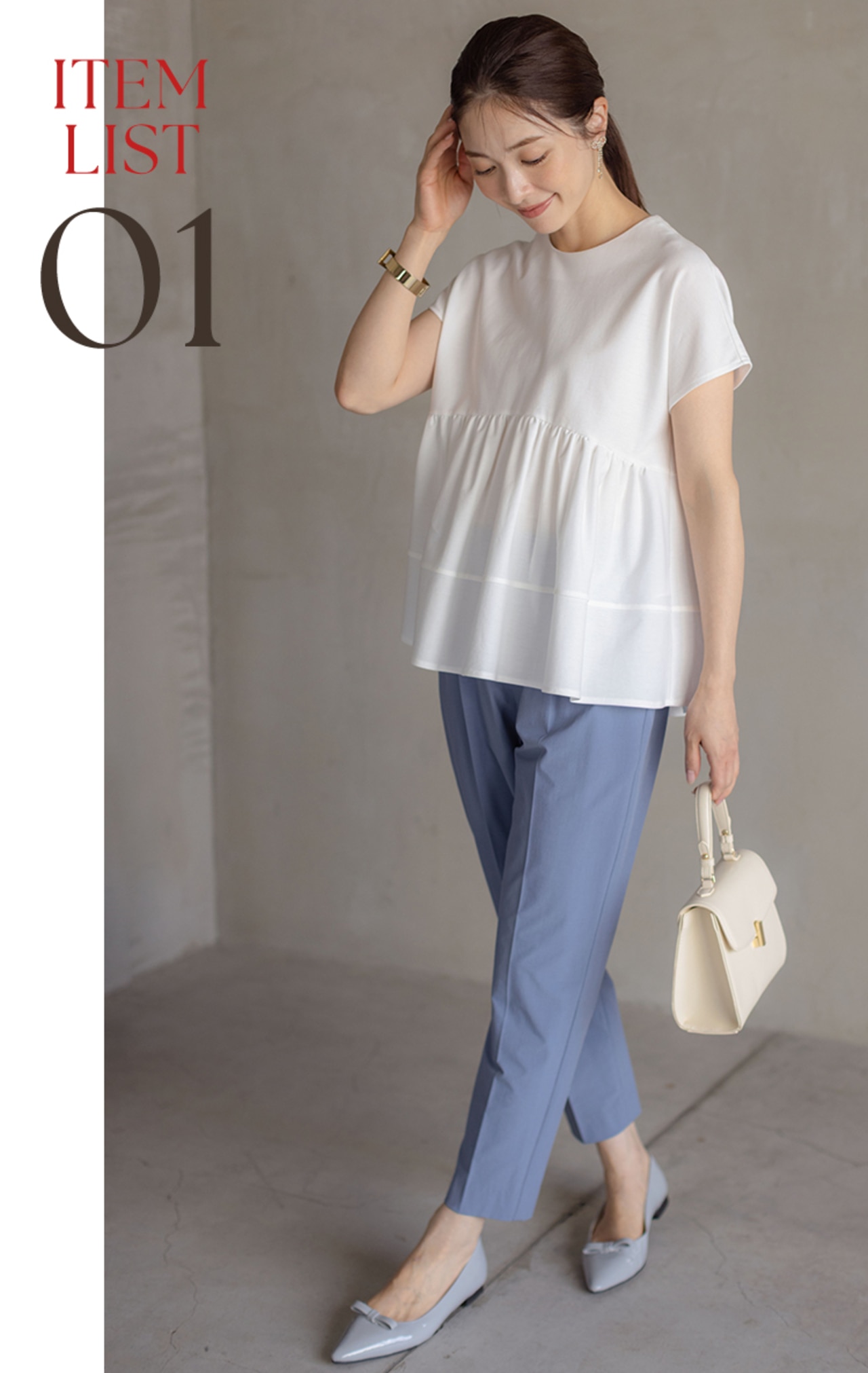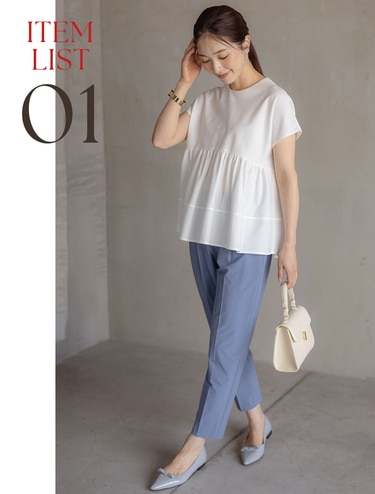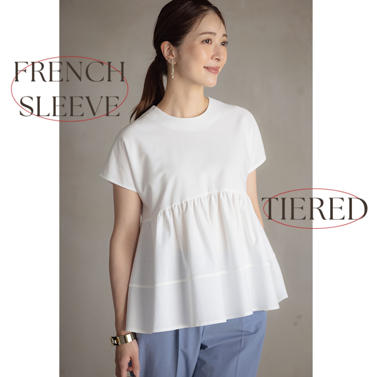 ティアード切り替えでスタイルUP見えが叶う上品見えカットソー。フレンチスリーブは二の腕を華奢にみせてくれるのも嬉しいポイント!合わせるアイテムによってはオンオフどちらも!