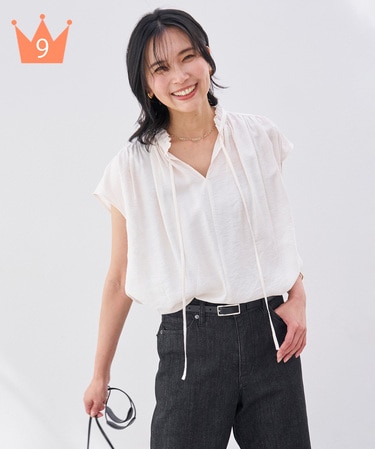 - リネンレーヨン ノースリーブブラウス/UNFILO
