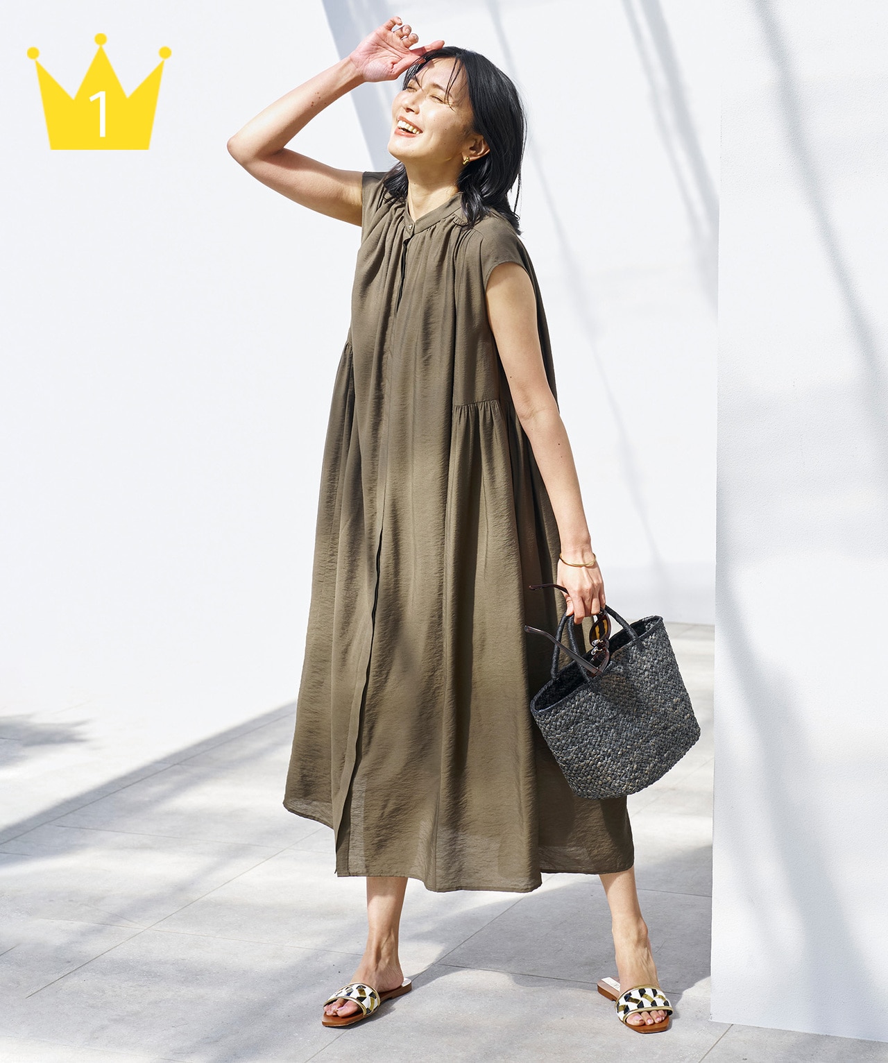 - リネンレーヨン ノースリーブワンピース/UNFILO