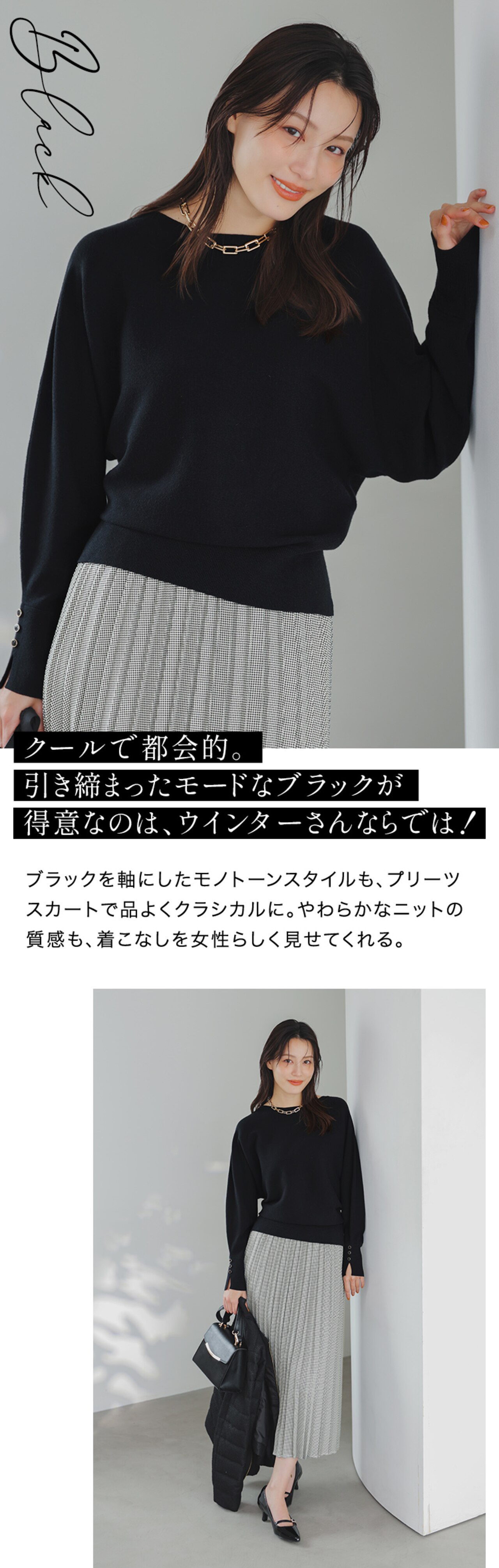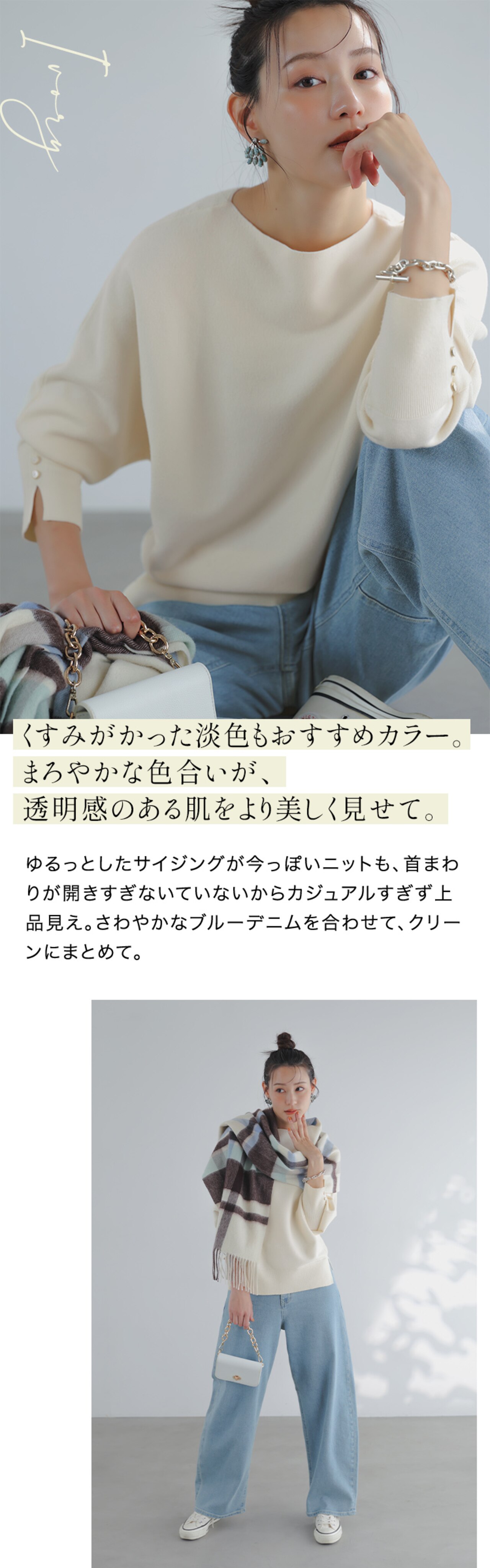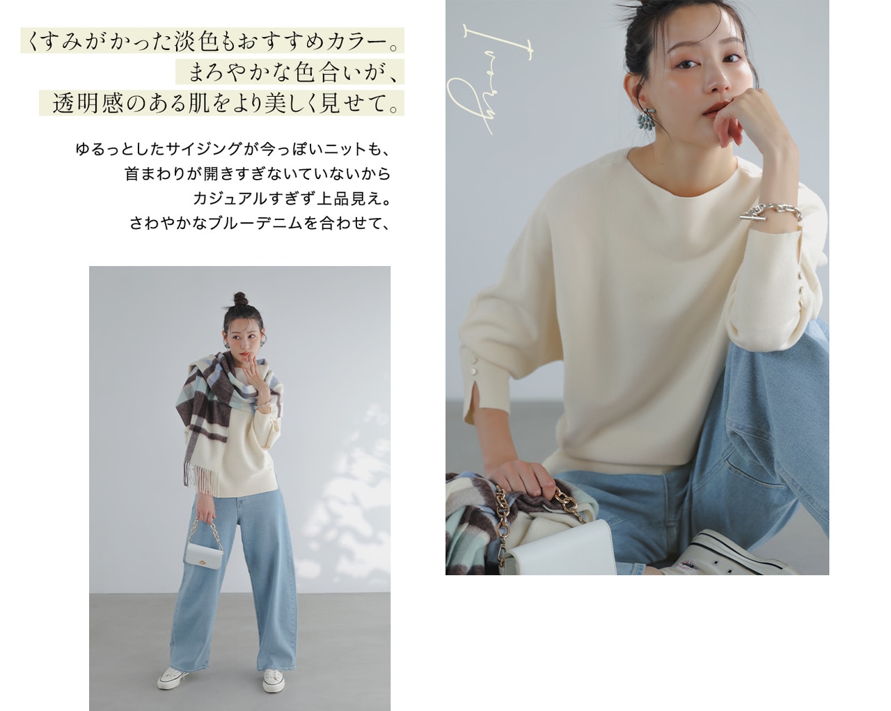 秋のワードローブの中心になる、シンプルなドルマンニット。