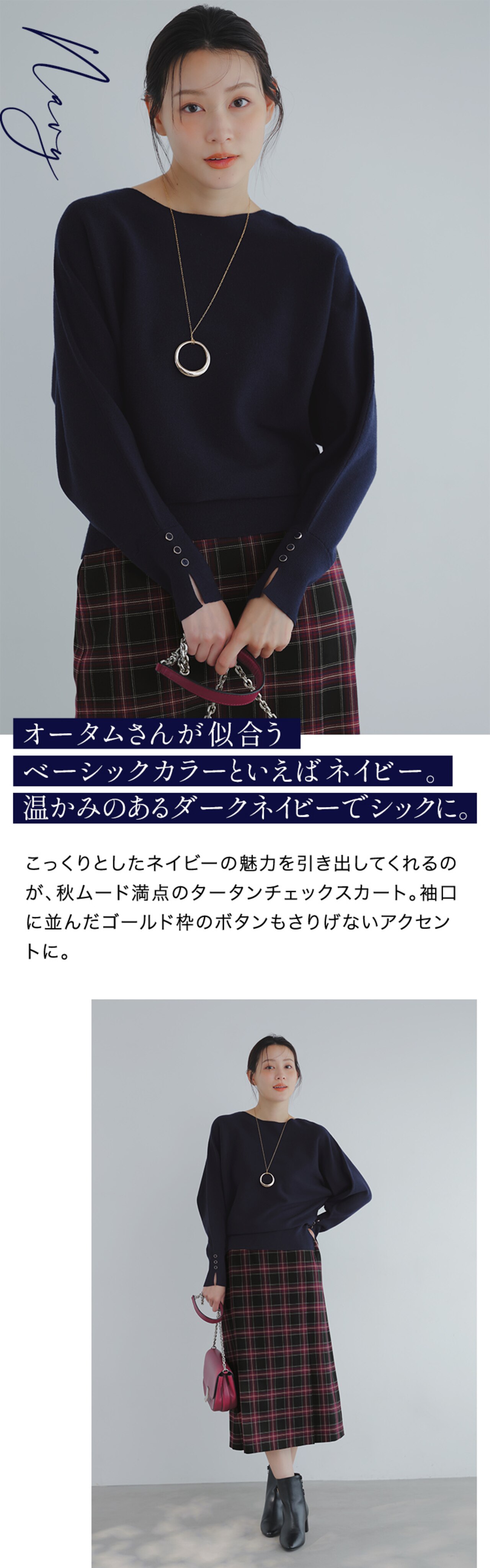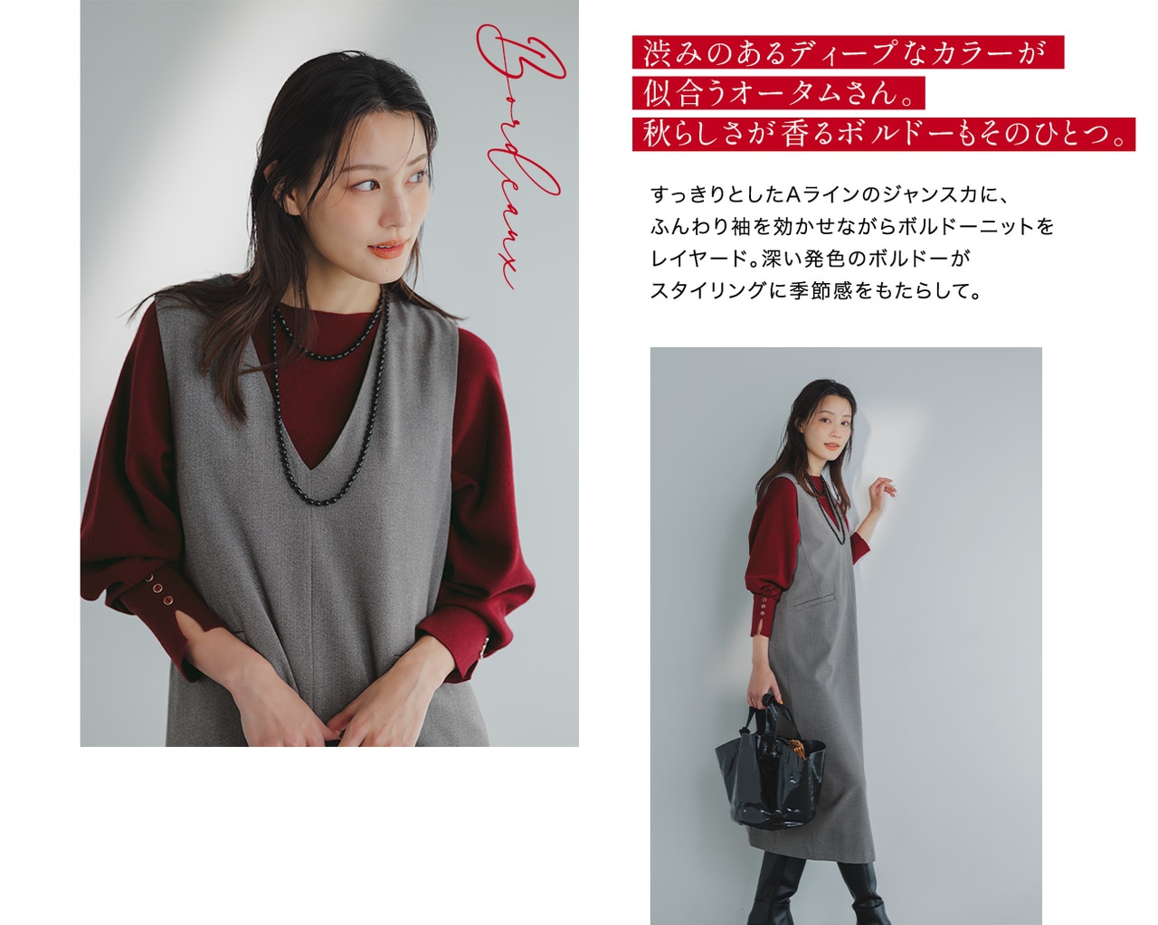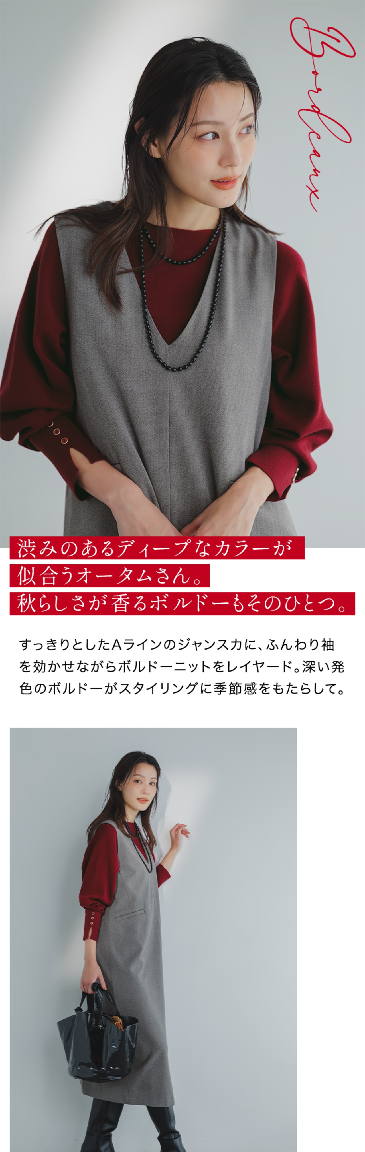 秋のワードローブの中心になる、シンプルなドルマンニット。