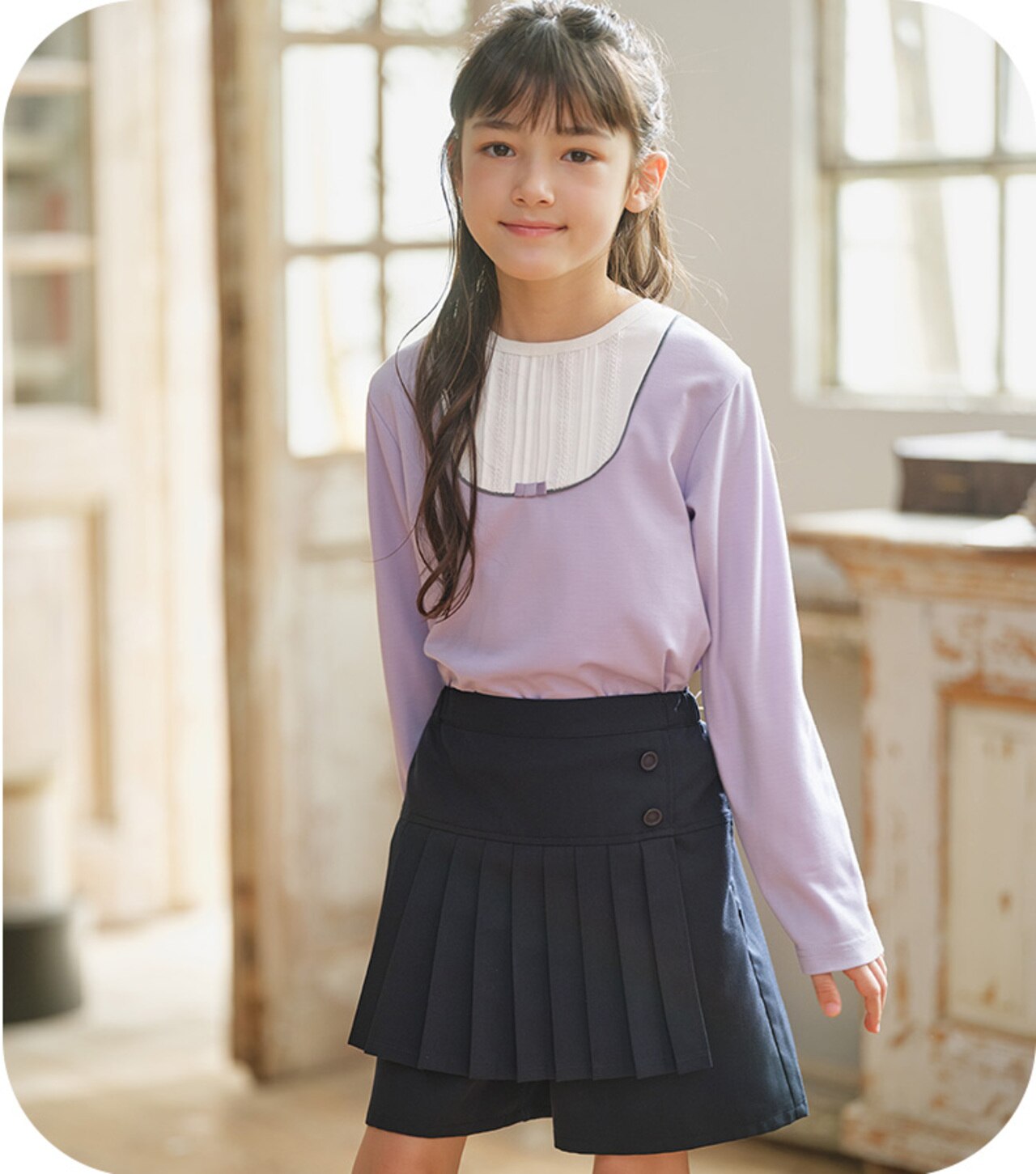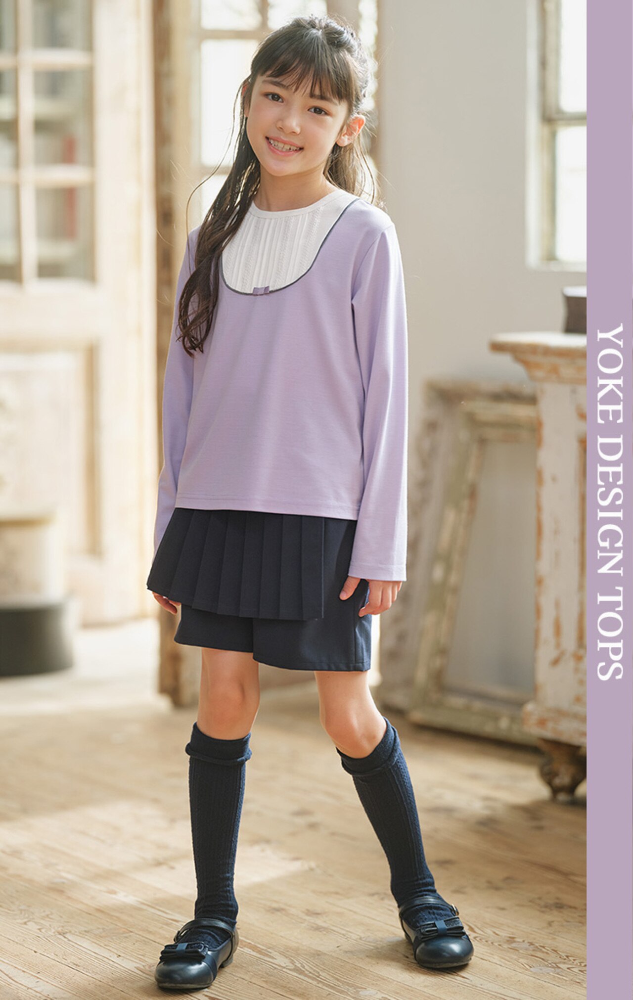 接触冷感・UVカットを施してあり、日差しの強い秋口のトップスとして最適な素材感のトップス。胸元に繊細なピンタックを施し、Tシャツでありながらブラウスのようなクラシカルな印象に仕上げました。スカートにもパンツにも合わせやすく、キュロットに合わせると上品カジュアルなスタイルに。