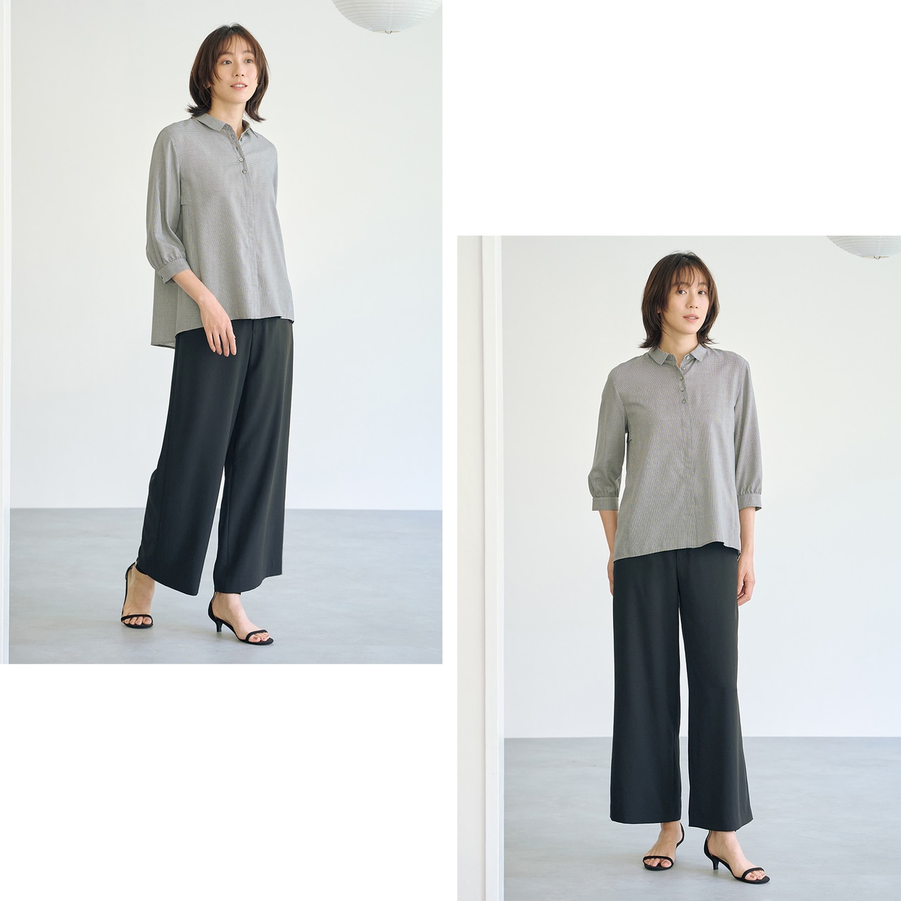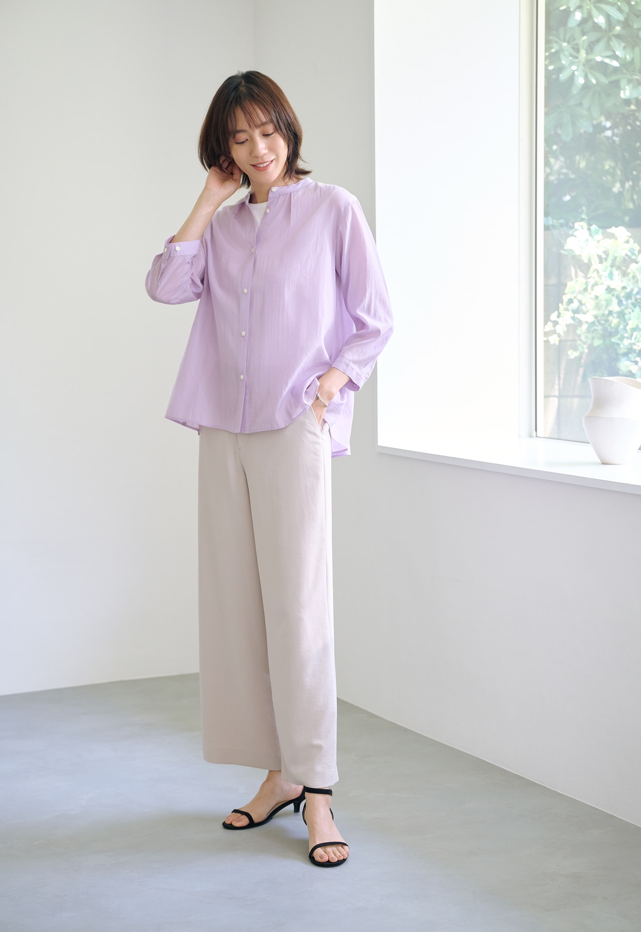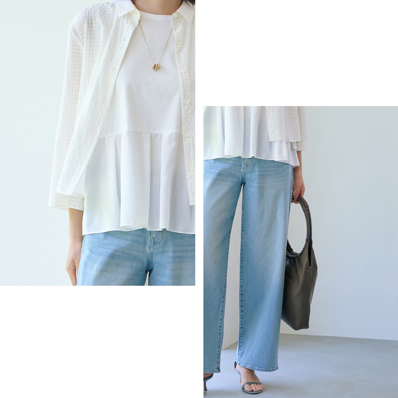 そんなアイテムを使った、季節の狭間も上品に涼やかに決まる、