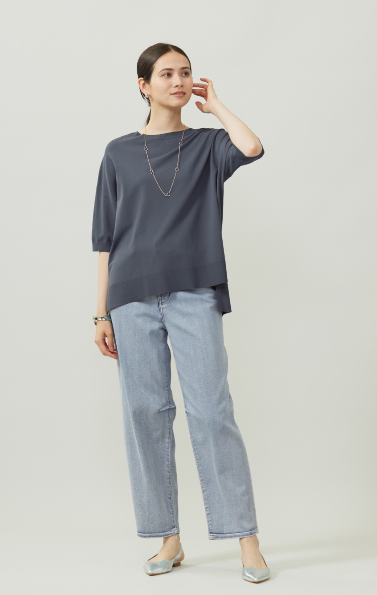 シンプルなトップスを合わせるだけで、洗練された大人のデイリーコーデに。