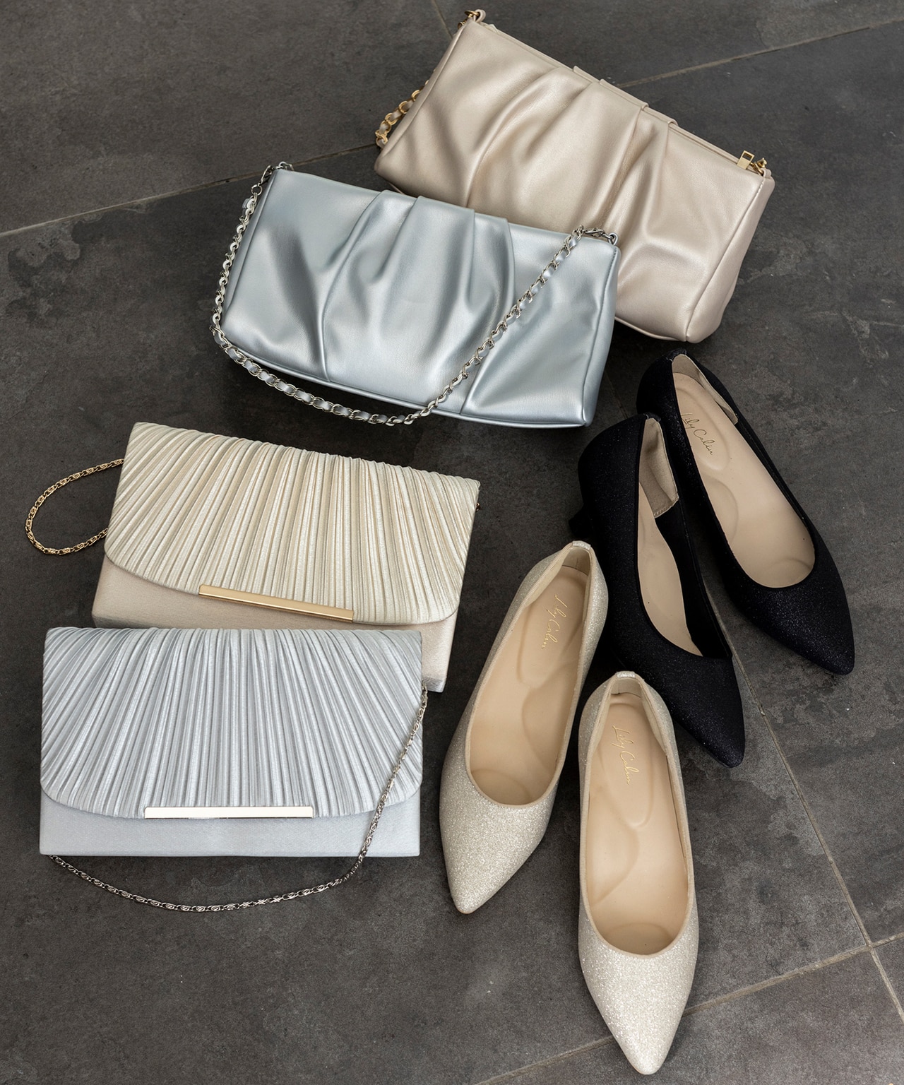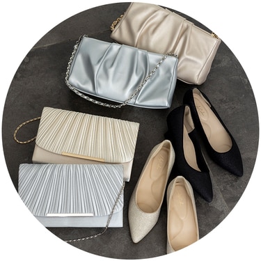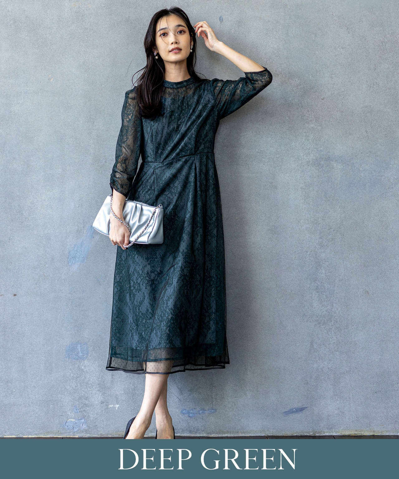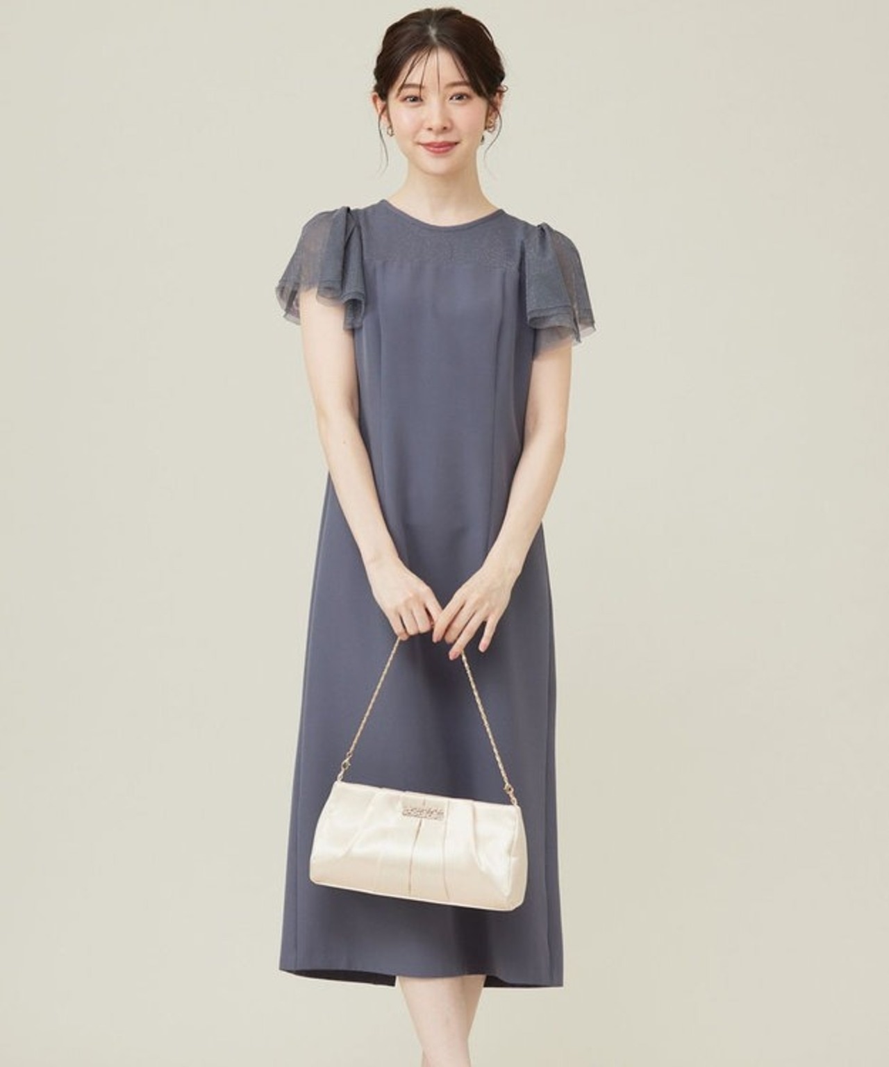 さりげない透け感とダークトーンで大人なドレスには、メタリックな小物できらっとアクセントをプラスして。華やかなシーンに映えるクラシカルなスタイリングの完成。