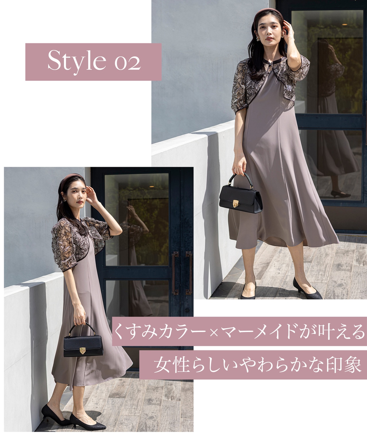 マーメイドシルエットのドレスが女性らしいシルエットをひきたてるドレス。