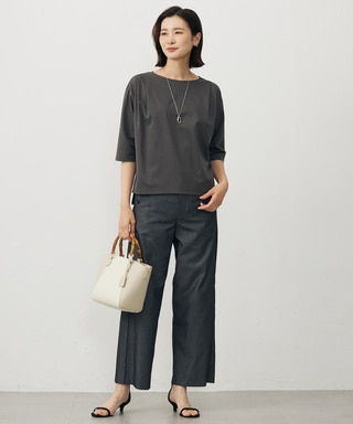 ドライタッチな肌触りに軽やかなシルエットで、暑い季節にも心地よく着られます。首元はすっきりと見せつつ、上品な印象のボートネックに仕上げました。大人の抜け感のある1枚は、パンツにもスカートにもバランスよく合わせられ、オンオフ問わず活躍します。