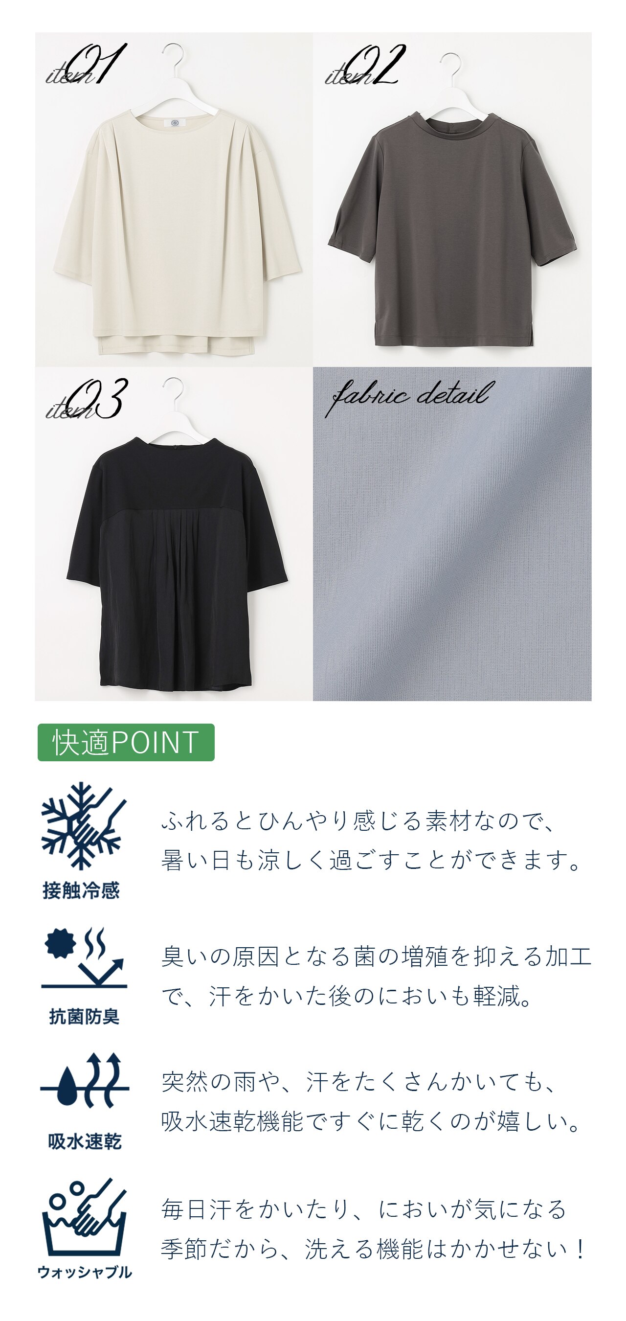 【洗える・抗菌防臭・接触冷感・吸水速乾】ドライポンチ ボートネック カットソー