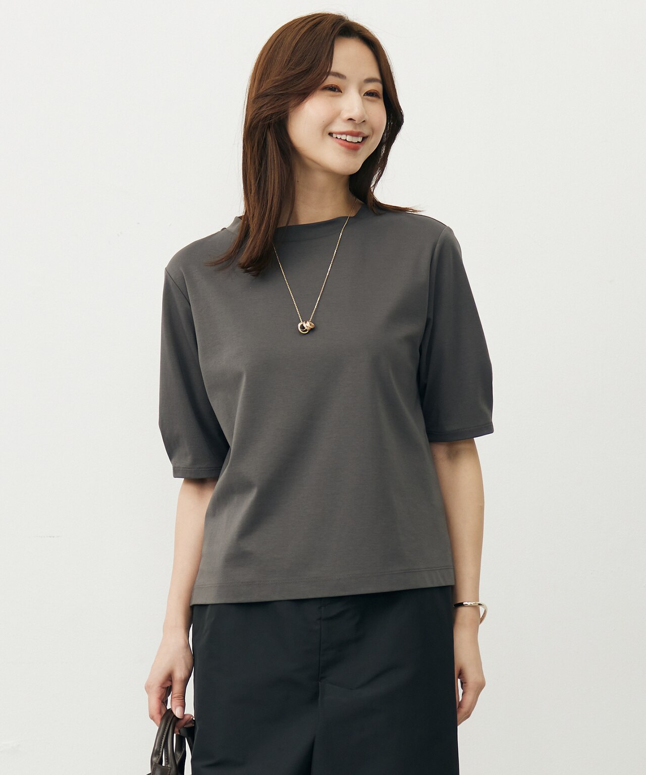 暑い時期にはさらりと1枚で、肌寒い日は羽織りのインナーとしても頼れる、コンパクトなモックネックカットソー。