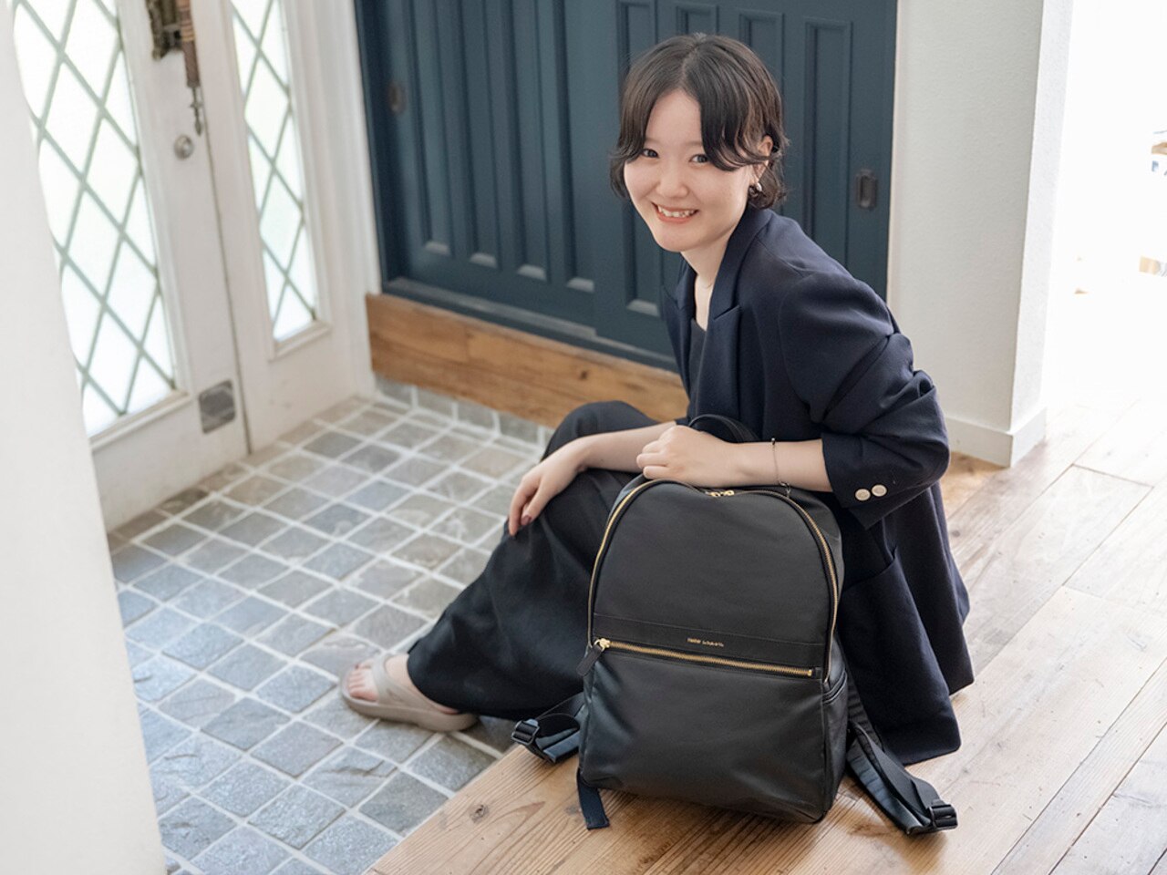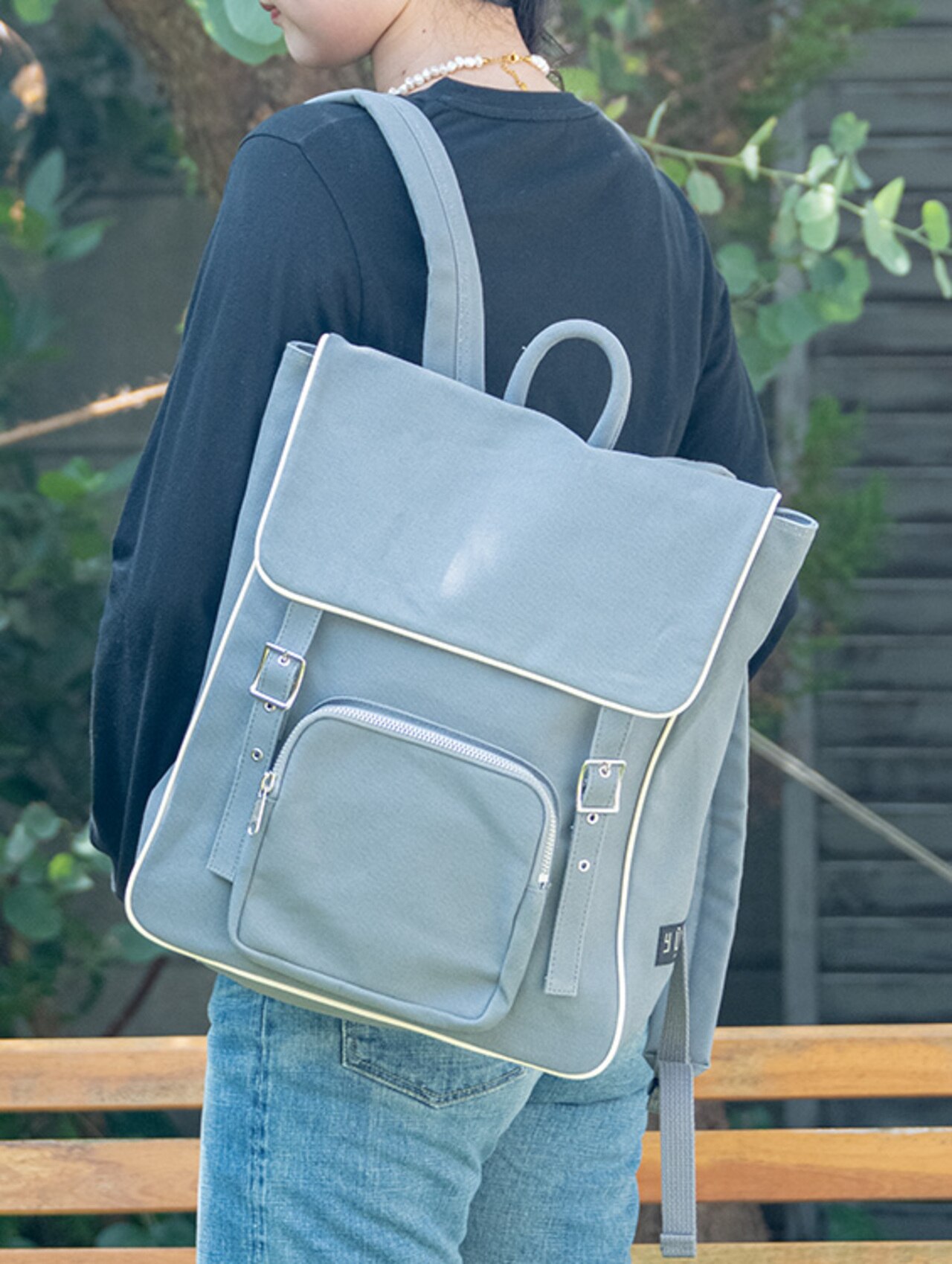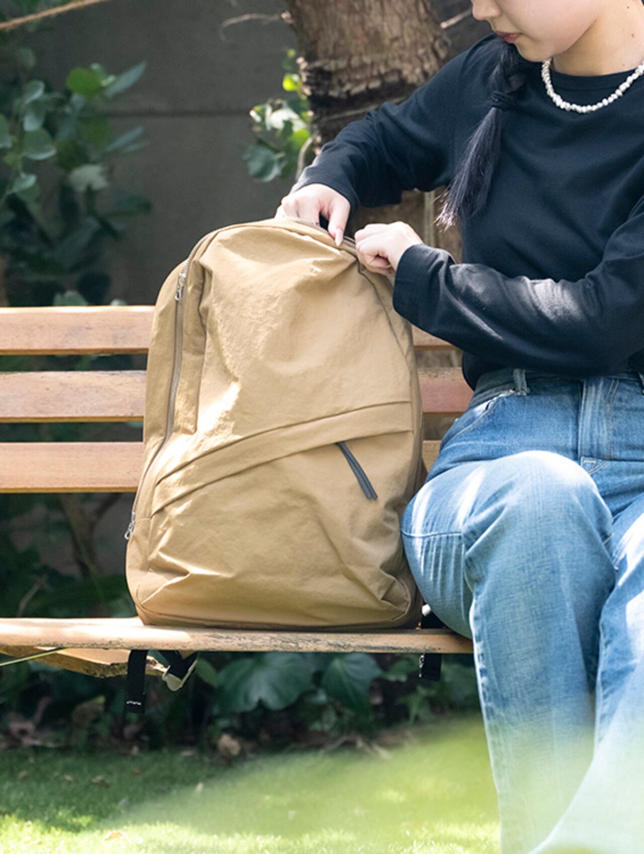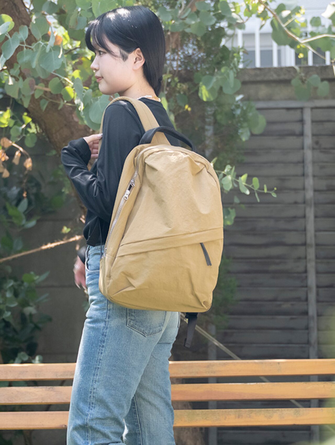 シンプルだけど雰囲気のあるリュック。環境に配慮されたポリウレタン素材でコーティング済みのため、優しい肌触りに軽量な上、汚れにくいのがポイント。