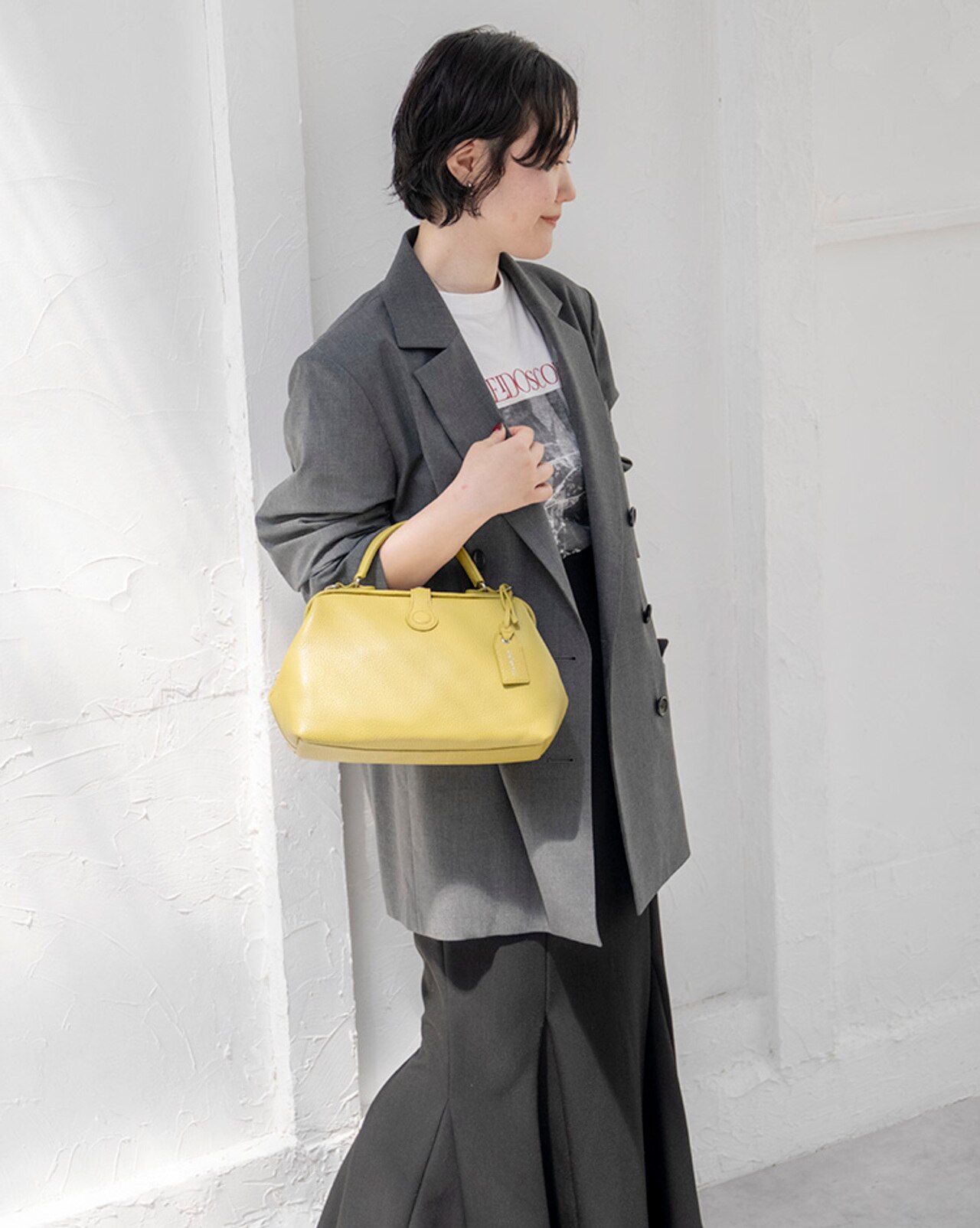 ミニサイズのボストンショルダーバッグ。カジュアルにも上品なスタイルにも合わせやすいデザインです。