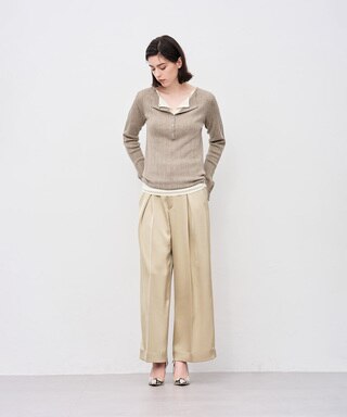 染めながらワッシャー加工を施す事により、表面感に深みのあるナチュラルなワッシャー感とアセテート風合いの糸を使用する事で高級感のある素材に仕上げました。