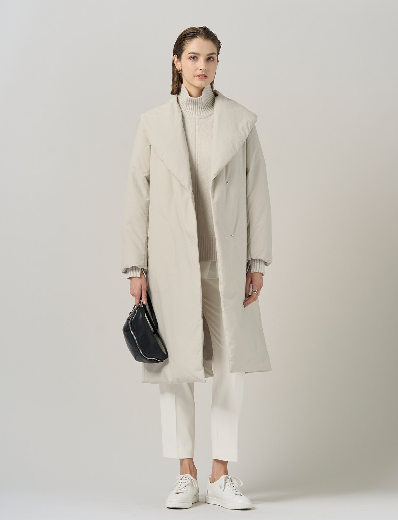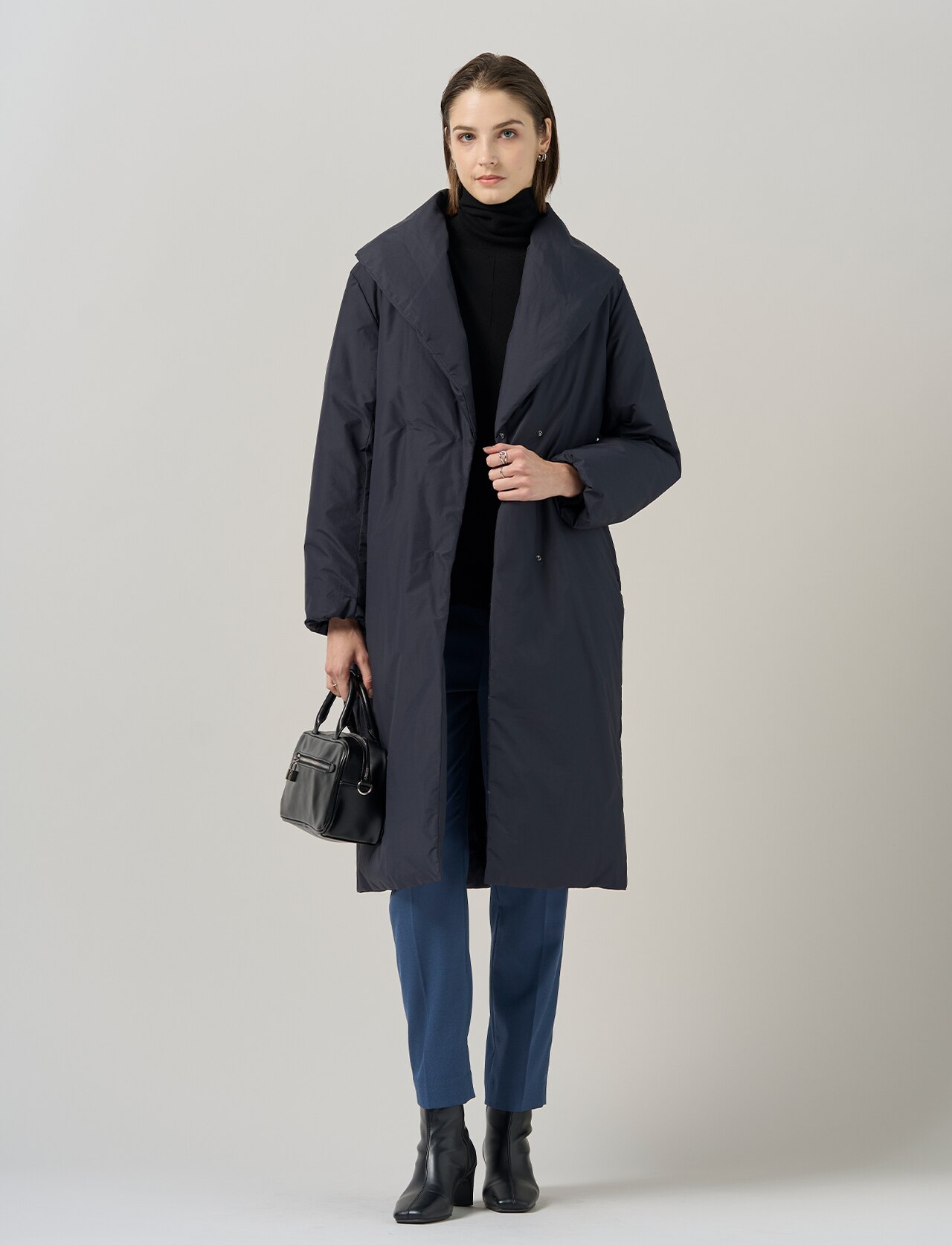 オンワード独自の新構造で、着ぶくれを防ぎスタイリッシュに暖かく、ストレスフリーな着心地が特徴。