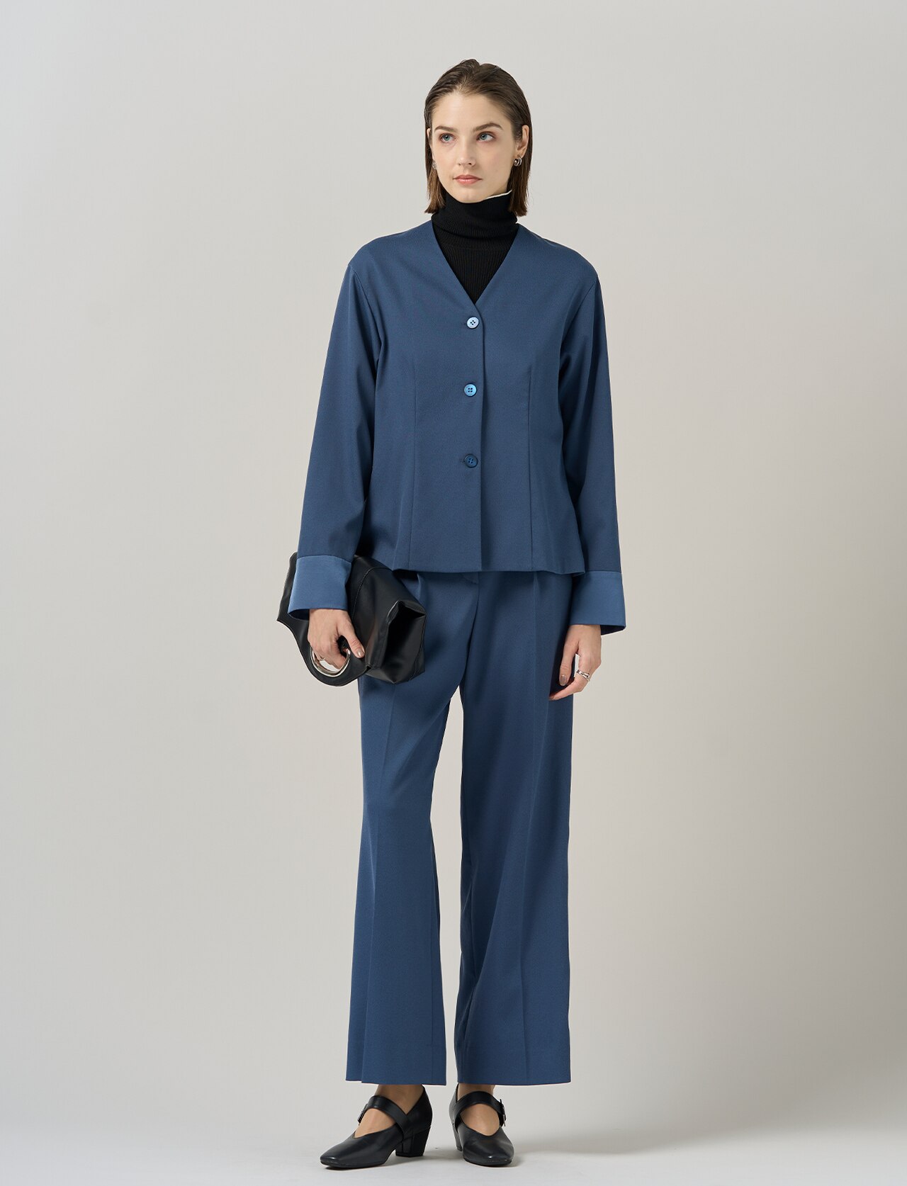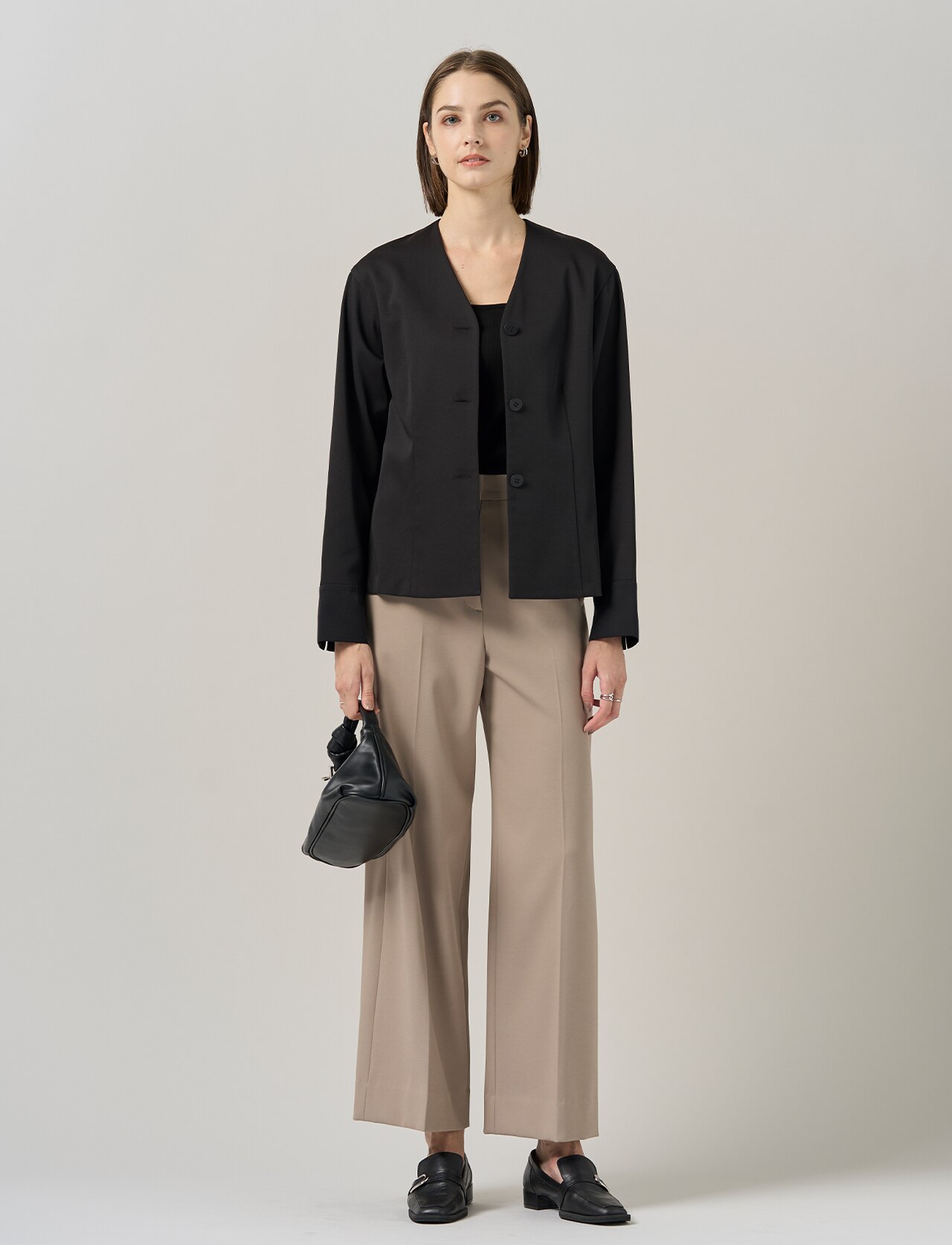 Vネックブラウス、ワイドストレートパンツ、スティックパンツ、Iラインスカートの4型展開です。