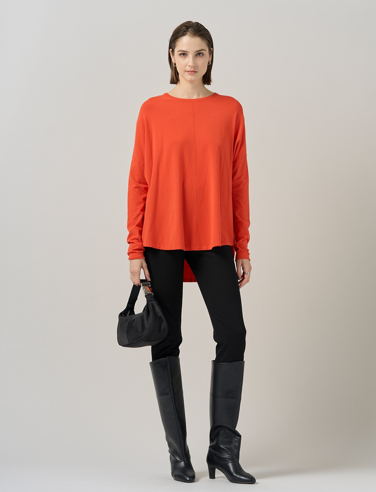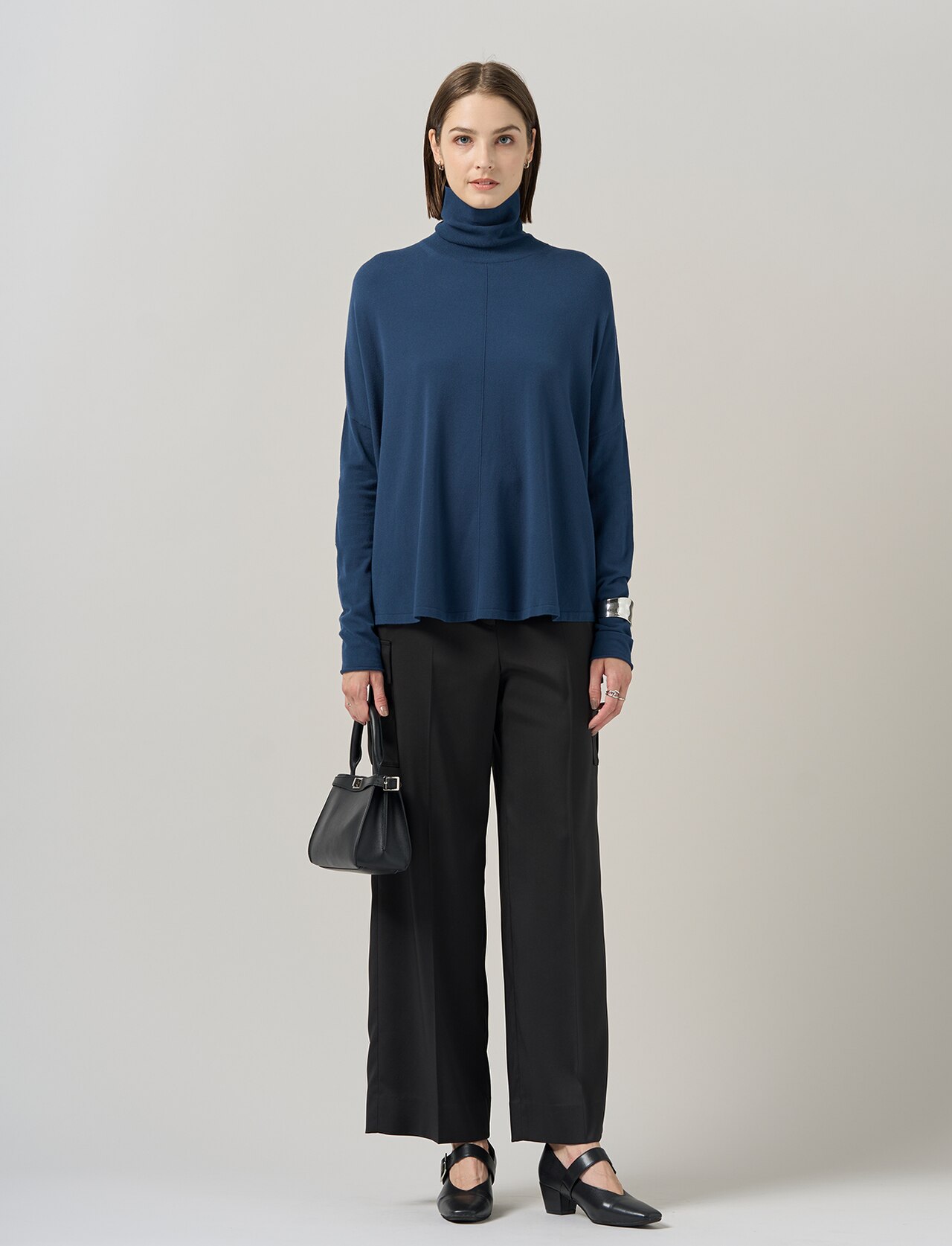 袖がスッキリしているので寒い季節はインナーとしても活躍。ハイネックとクルーネックの2型展開です。