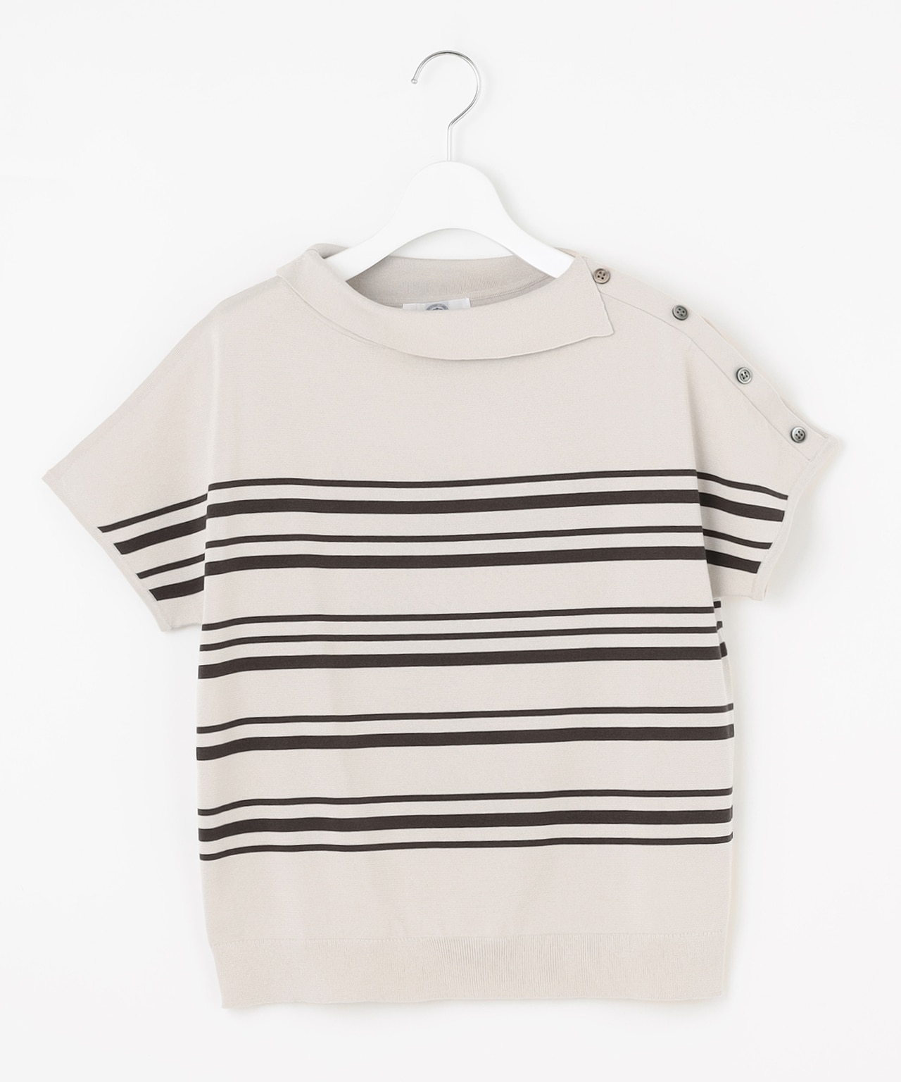【WEB限定カラーあり・洗える・抗菌防臭】COTTON POLYESTER ボーダー 襟付き ニット