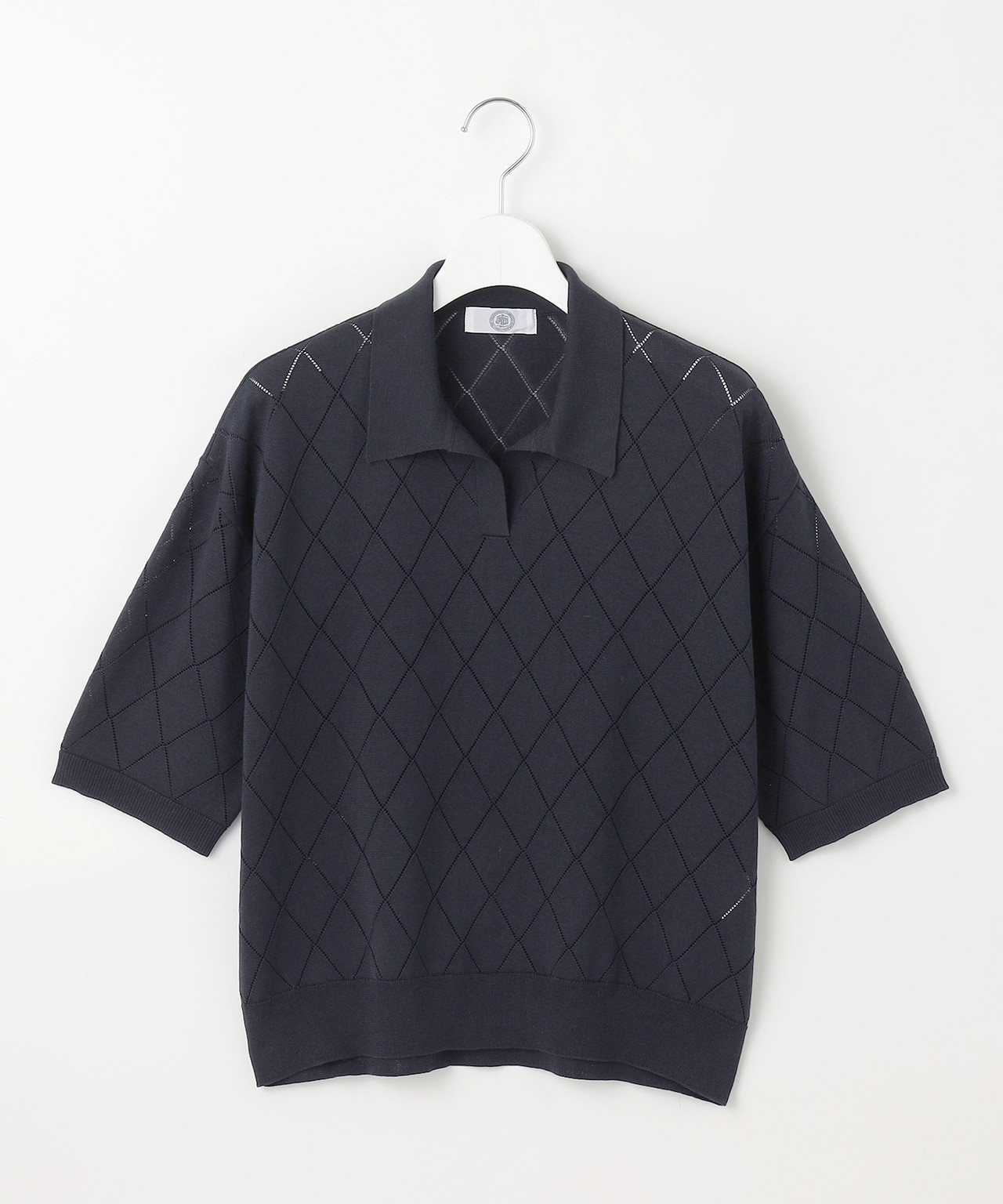 ダイヤ柄の編地が程よく存在感と涼しさを演出するポロニット
