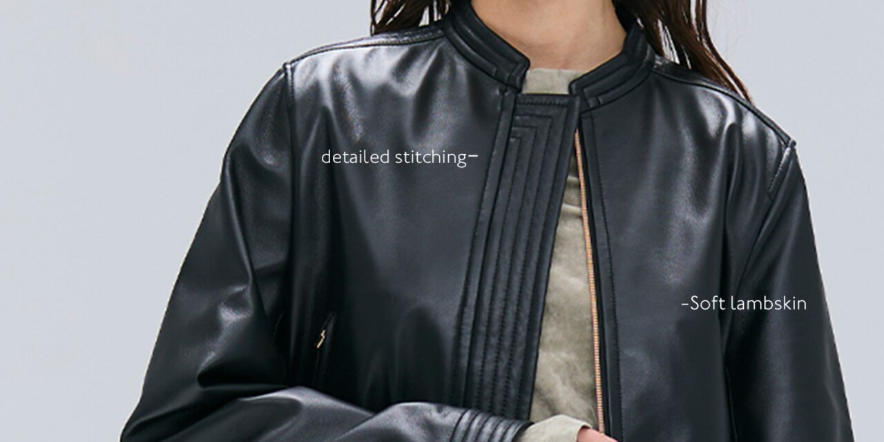 上質な素材を追求し、快適な着心地にこだわったレザー。牛革の驚くほど軽やかでストレスフリーな着心地で、Tシャツやニット、ブラウスにさらりと羽織るだけで、ON/OFF問わず幅広いシーンで活躍。細やかなステッチデザインがさりげなく、着回し自在な大人のためのワードローブ。