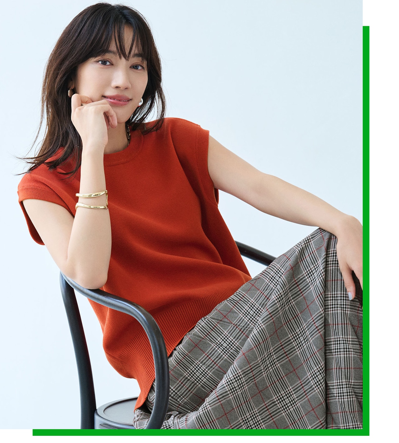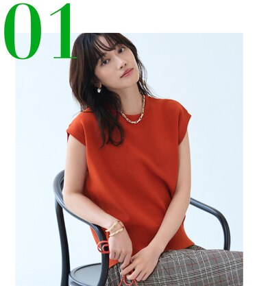 さらりと一枚で着ても、または中にTシャツやシャツを重ねてもOK。いつもの着こなしに+αの今っぽさを添えてくれる優秀ニット。鮮やかなオレンジカラーならコーデがぐっと新鮮に。