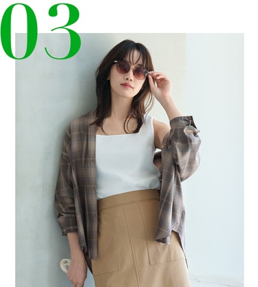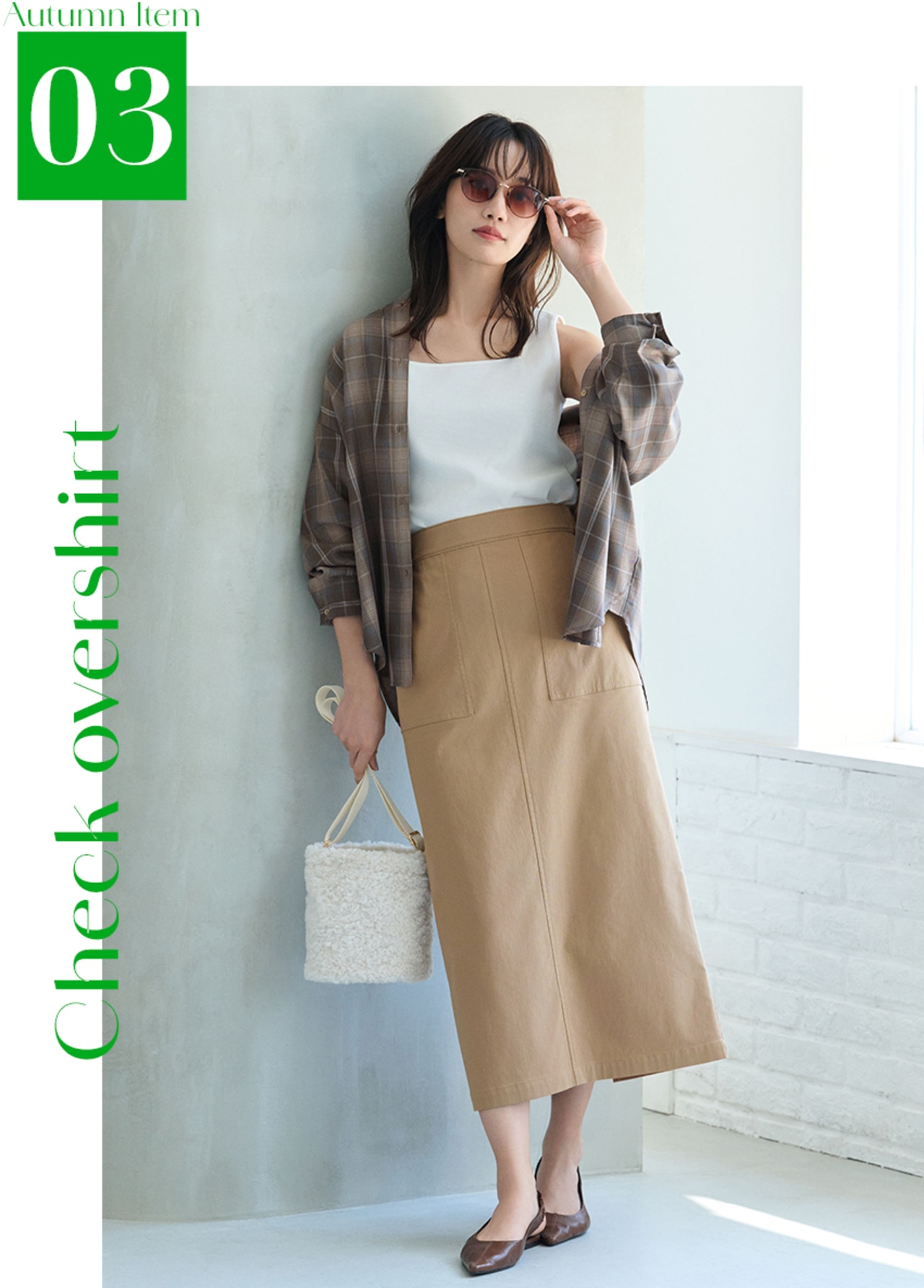 この秋のビッグトレンドのひとつでもあるチェックシャツは、合わせるボトムを選ばないオールマイティな万能さ。落ち感のある柔らかな素材なので、少し襟を抜いてルーズに着崩すのが今の気分。