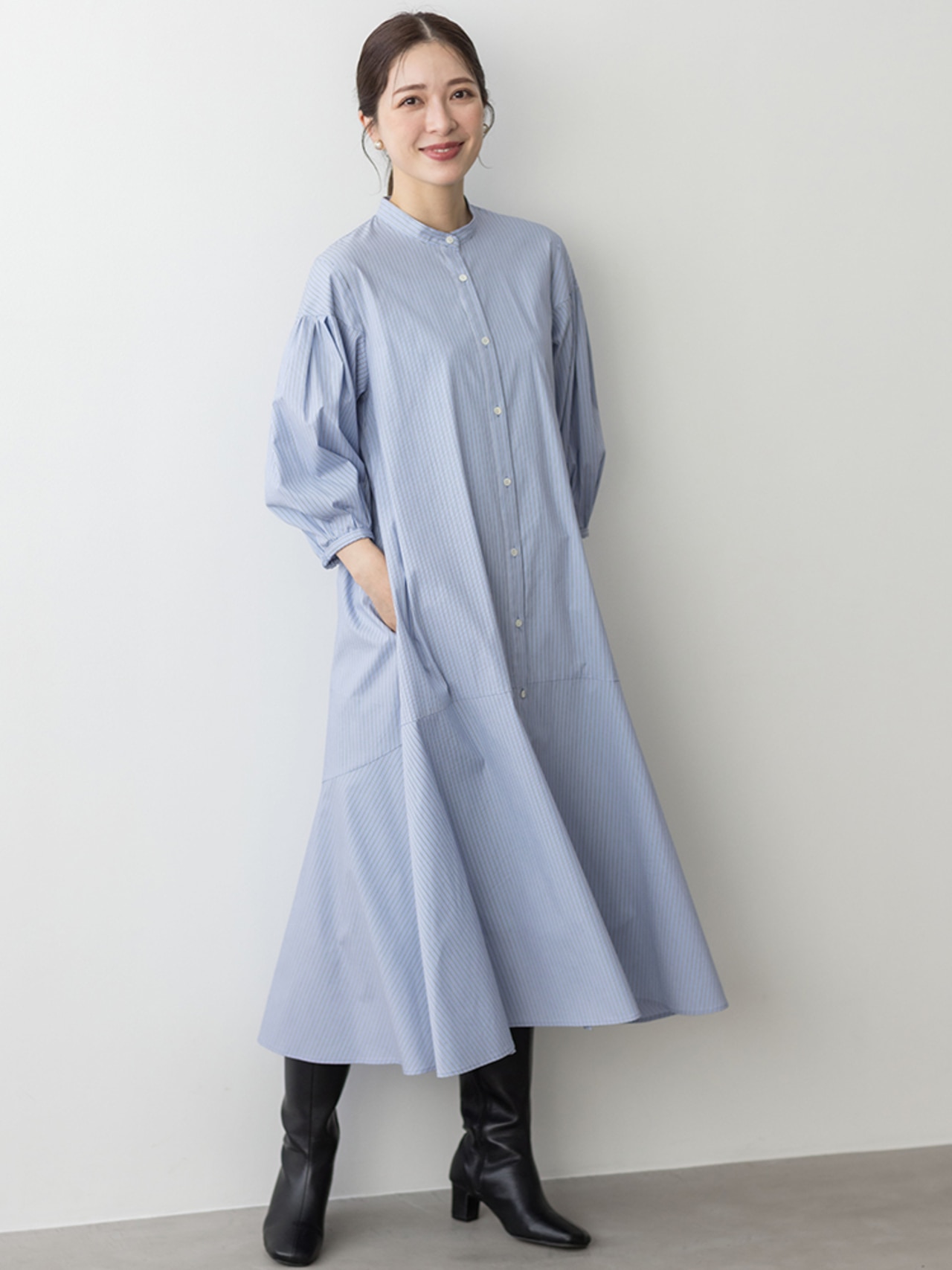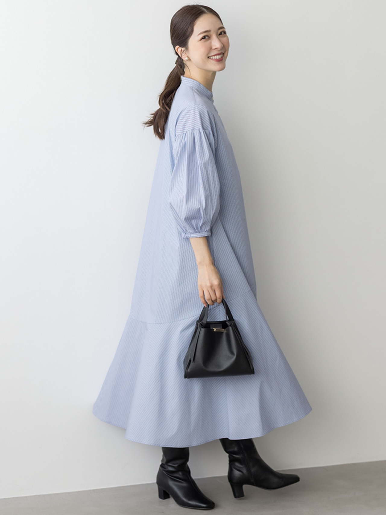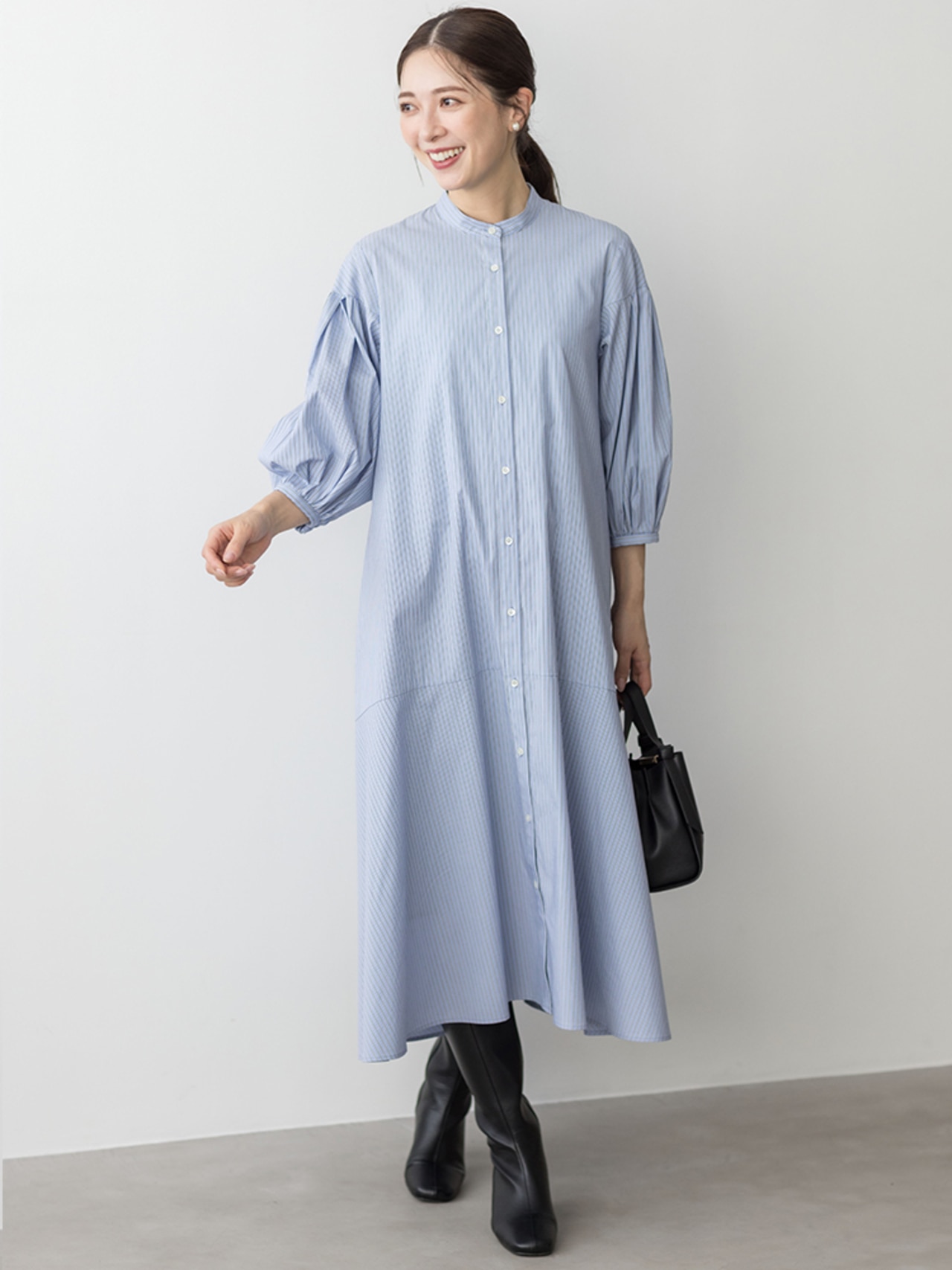 身体から離れたティアードサックワンピースは、まだまだ暑い初秋に重宝間違い無しです。ブラックのチェックは品よく華やかに着られます。