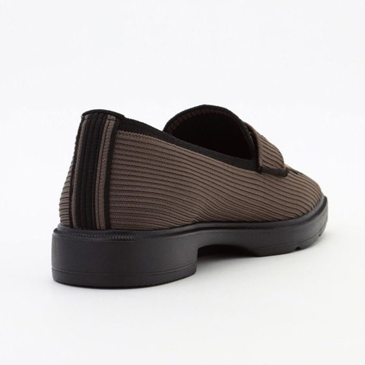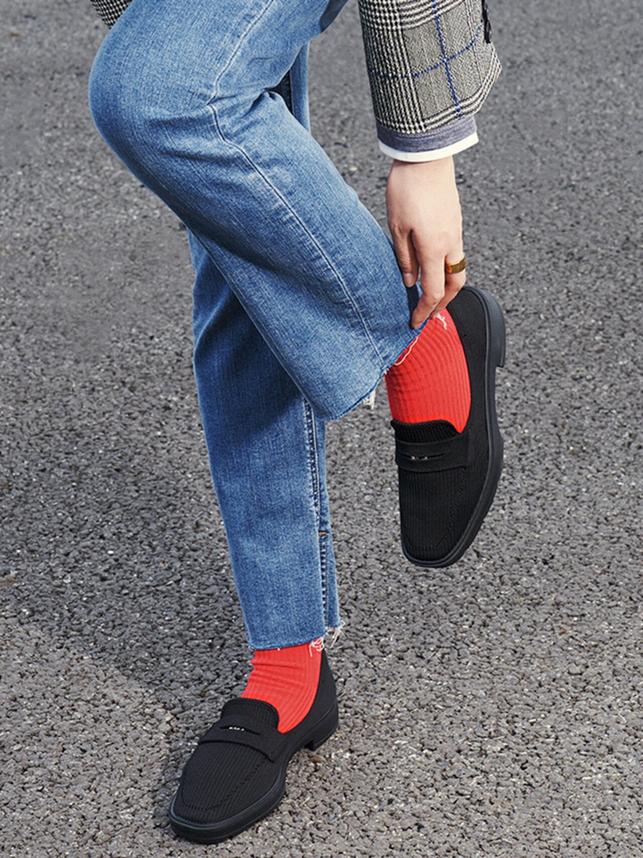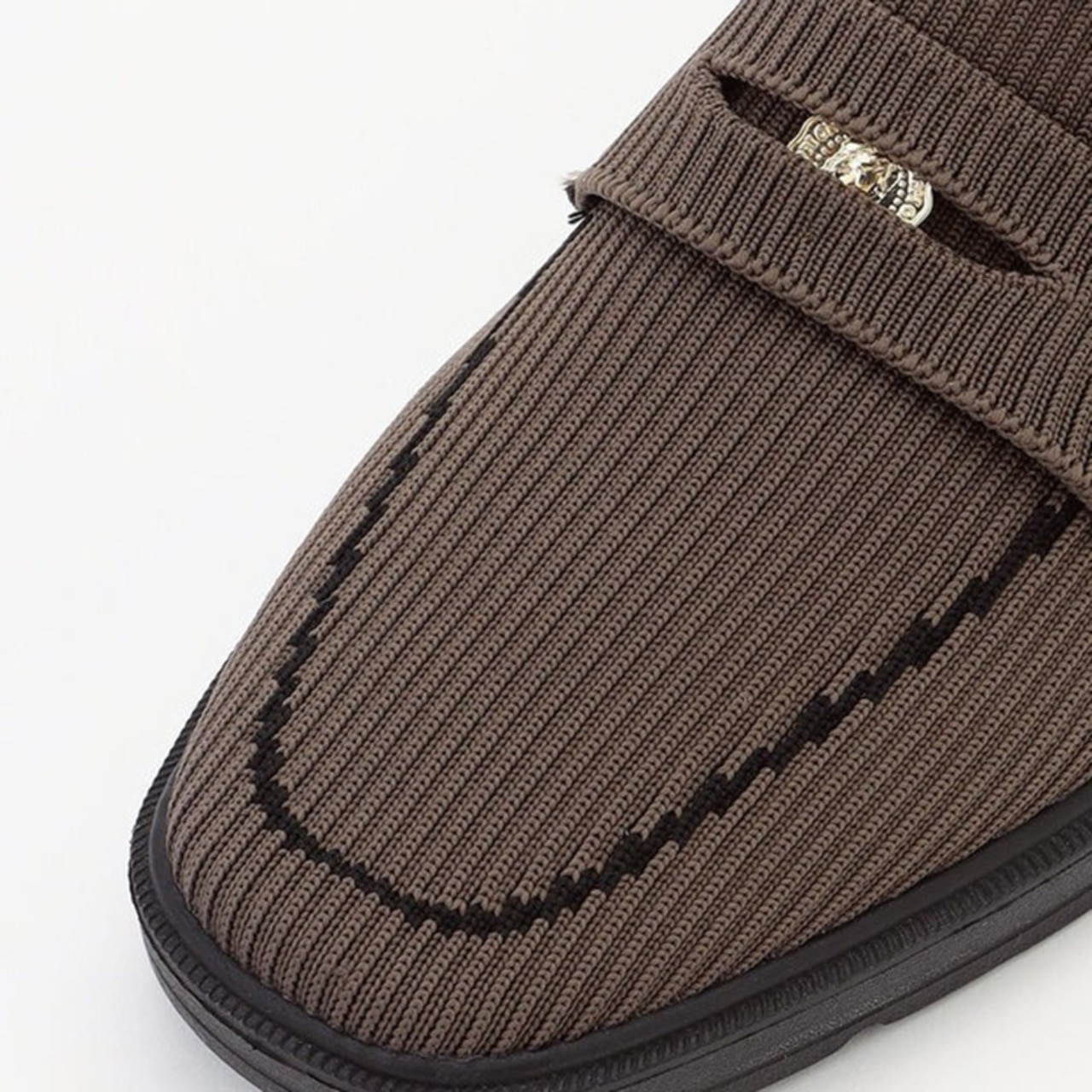 steppiのニット素材の一足は、リブ編みとコインディテールで秋らしさ満点。