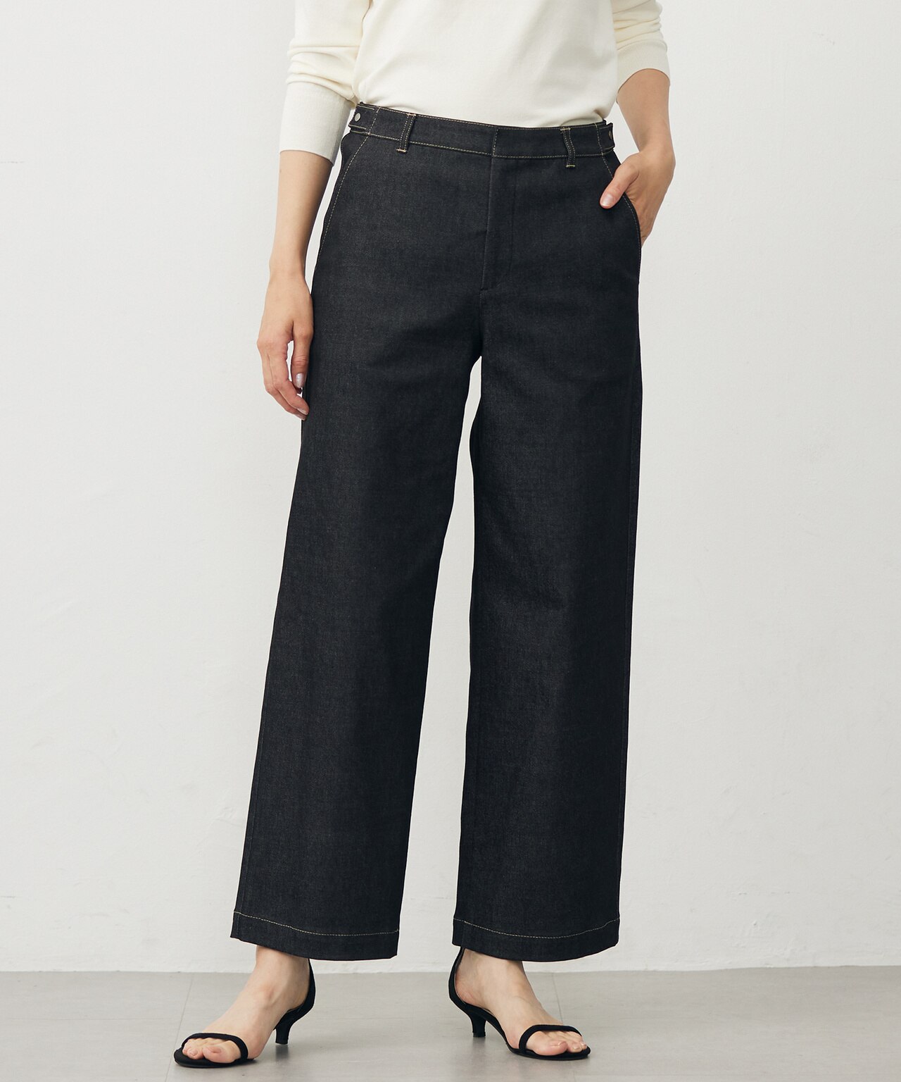 【洗える】Shineシャンブレーツイル クロップド パンツ