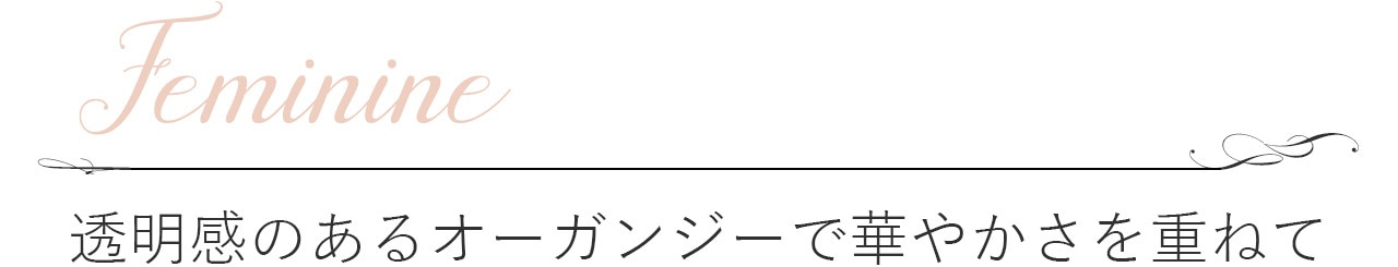 美しいレースをはじめ繊細な素材感が魅力の「フェミニン」なスタイル。品よく洗練された雰囲気の「シック」なスタイル。豊富なラインナップから、特別な日に寄り添うとっておきの1枚を見つけてください。