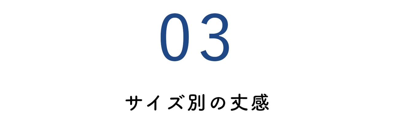 Sよりも丈が長く、リラックス感やカジュアルさが出るため、抜け感のあるスタイルに。ヒールで合わせるのがおすすめです。