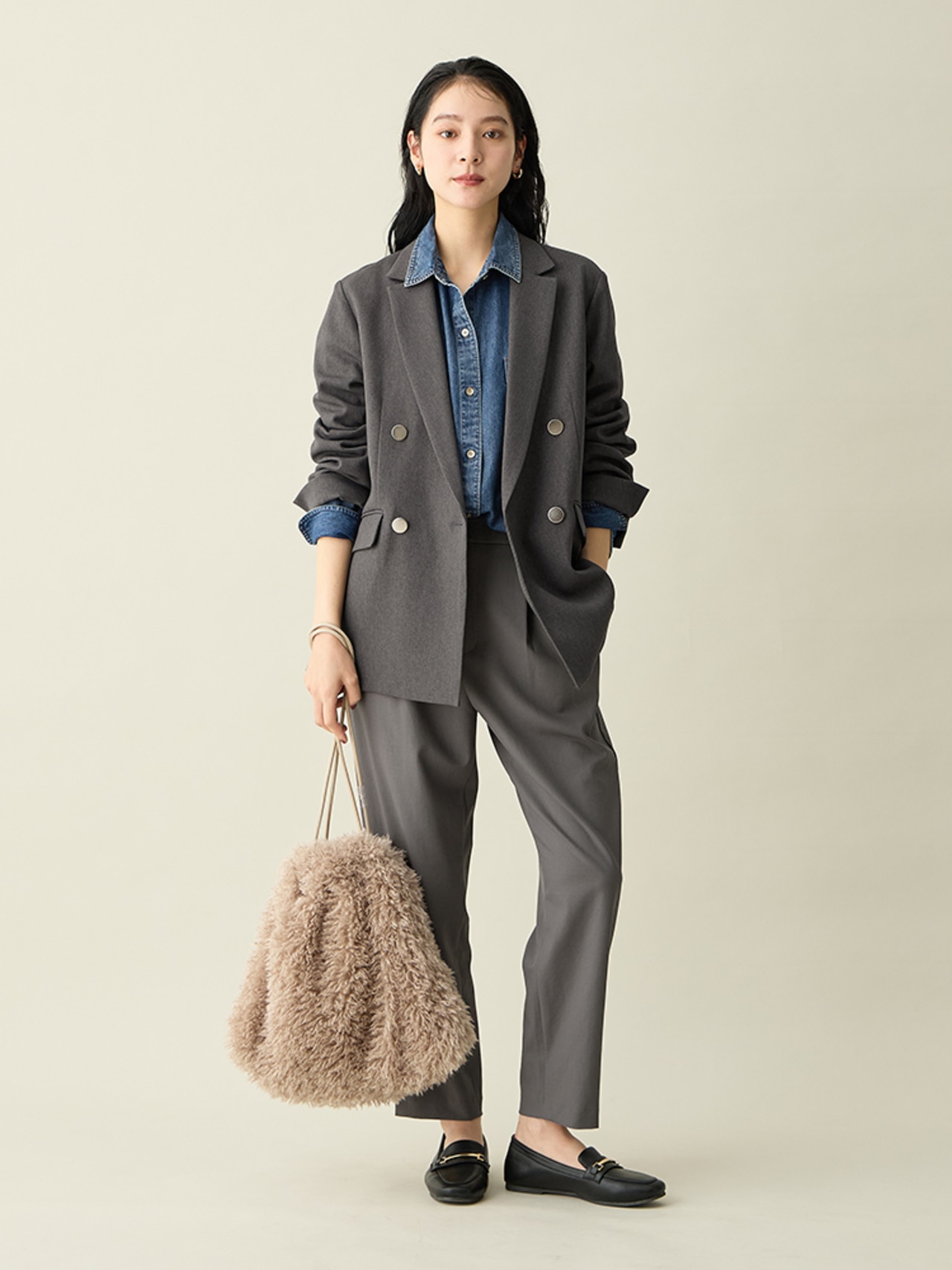 オールシーズン穿けるパンツは1本は持っておくべきアイテム!ゆったりとしたダブルのジャケットでも、テーパードならすっきり美脚見えが叶います。【洗濯機可/接触冷感/UVケア/ウエストゴム】イージーテーパードパンツ【洗濯機可/接触冷感/UVケア/ウエストゴム】イージーテーパードパンツANY¥4,990(税込)→¥3,991(税込)【洗濯機可】オーバーデニムシャツ【洗濯機可】オーバーデニムシャツANY¥5,990(税込)ウーリッシュWブレストジャケットウーリッシュWブレストジャケットANY¥10,990(税込)