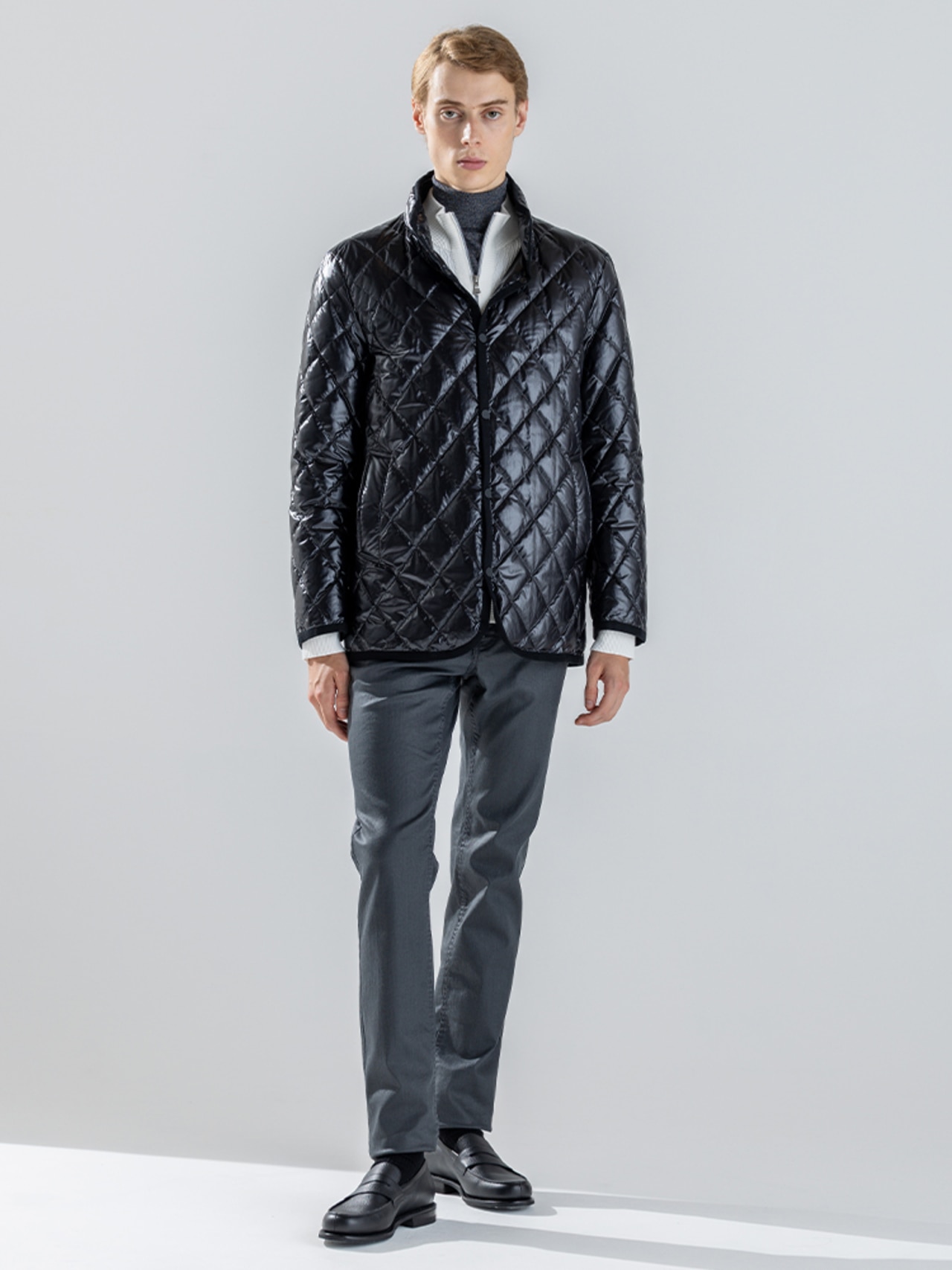 ダウン90%、フェザー10%のライナーは、単体でも様になるキルティングジャケット。