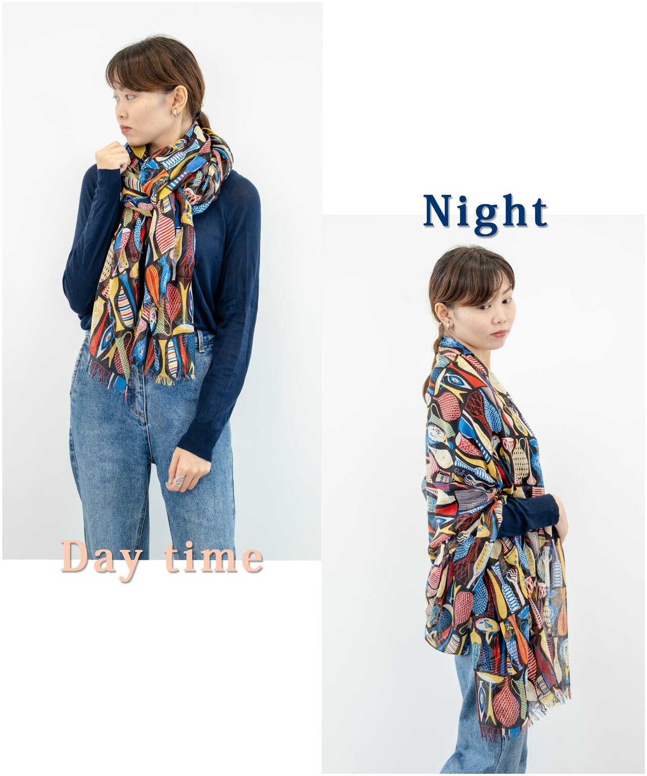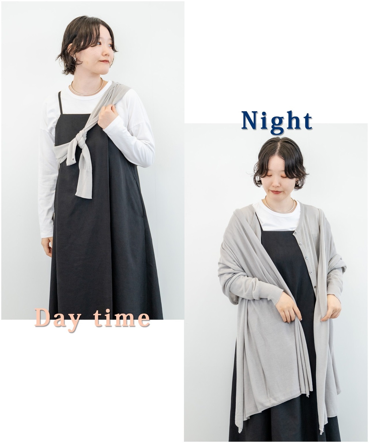 夜は大判サイズを活かして羽織ることで、気温差対策として使えます。