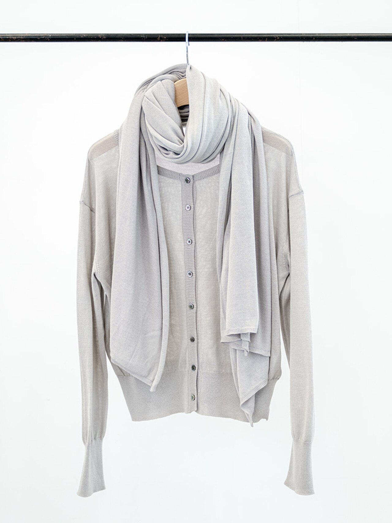 上質なコットンとシルクを掛け合わせ、愛媛の工場で丁寧に編み上げたカーディガン。