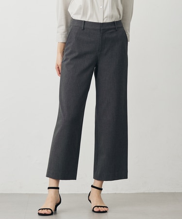 すっきりとシルエットのクロップド丈ワイドパンツ。ノータックでお腹回りがスッキリと見え、後ろウエスト部分はゴム入りのため、穿き心地も抜群◎。どんなトップスにも合わせやすく、オフィスでもデイリーでもシーンを問わず活躍します。