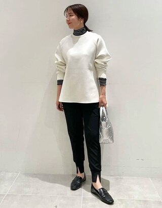 シンプルですが、デザインやシルエットがさりげなくオシャレです。首のつまり具合もちょうど良くて、1枚で来ても真冬は下にタートルネックを合わせても良い感じです。楽に着られてちょっとおしゃれに見えるのって良いですよね~