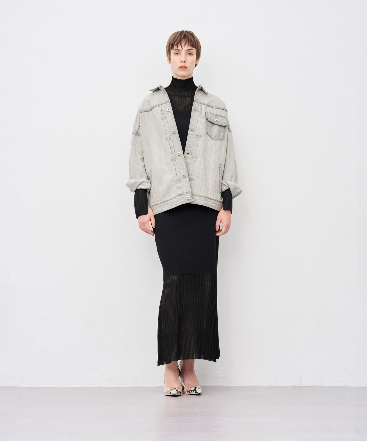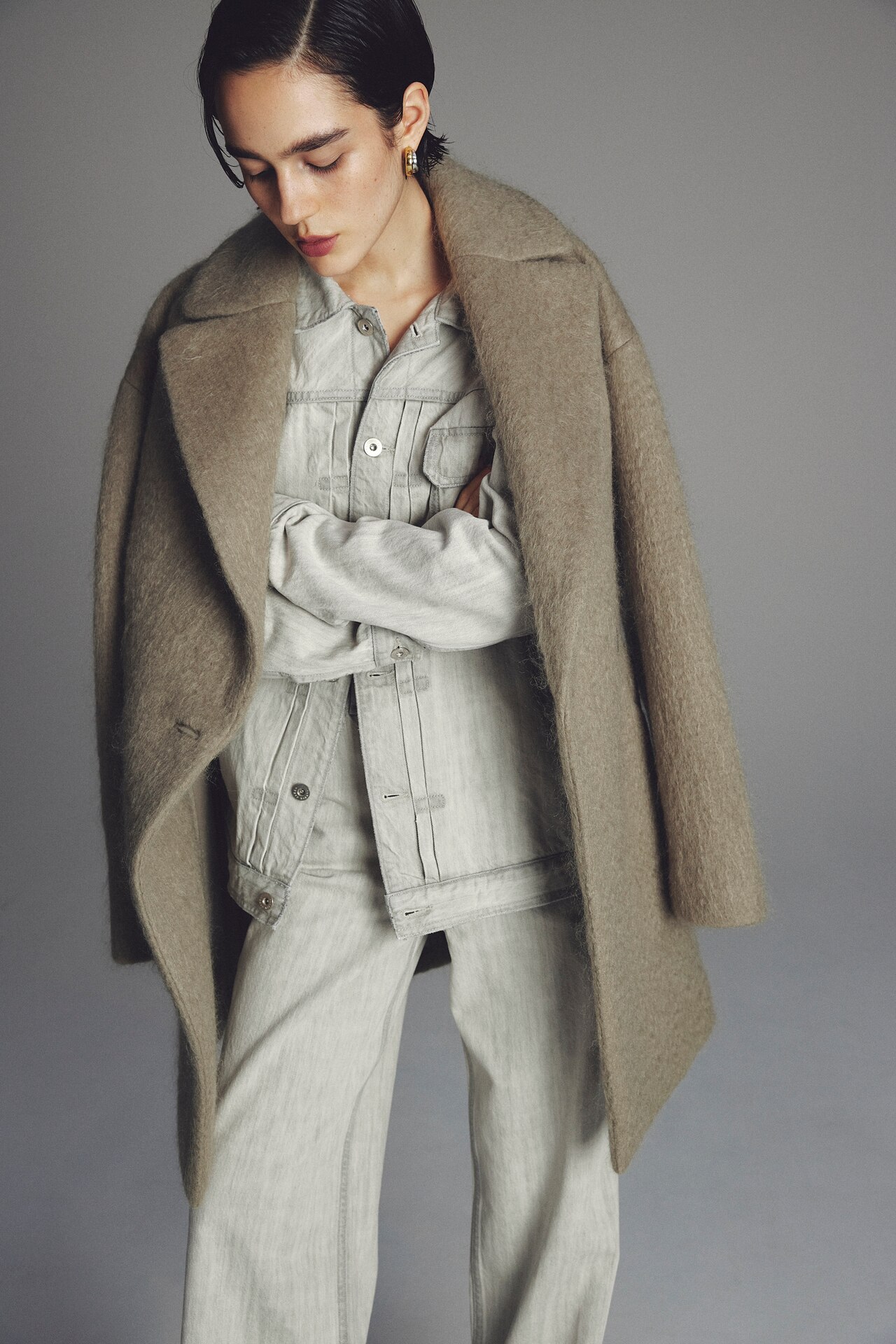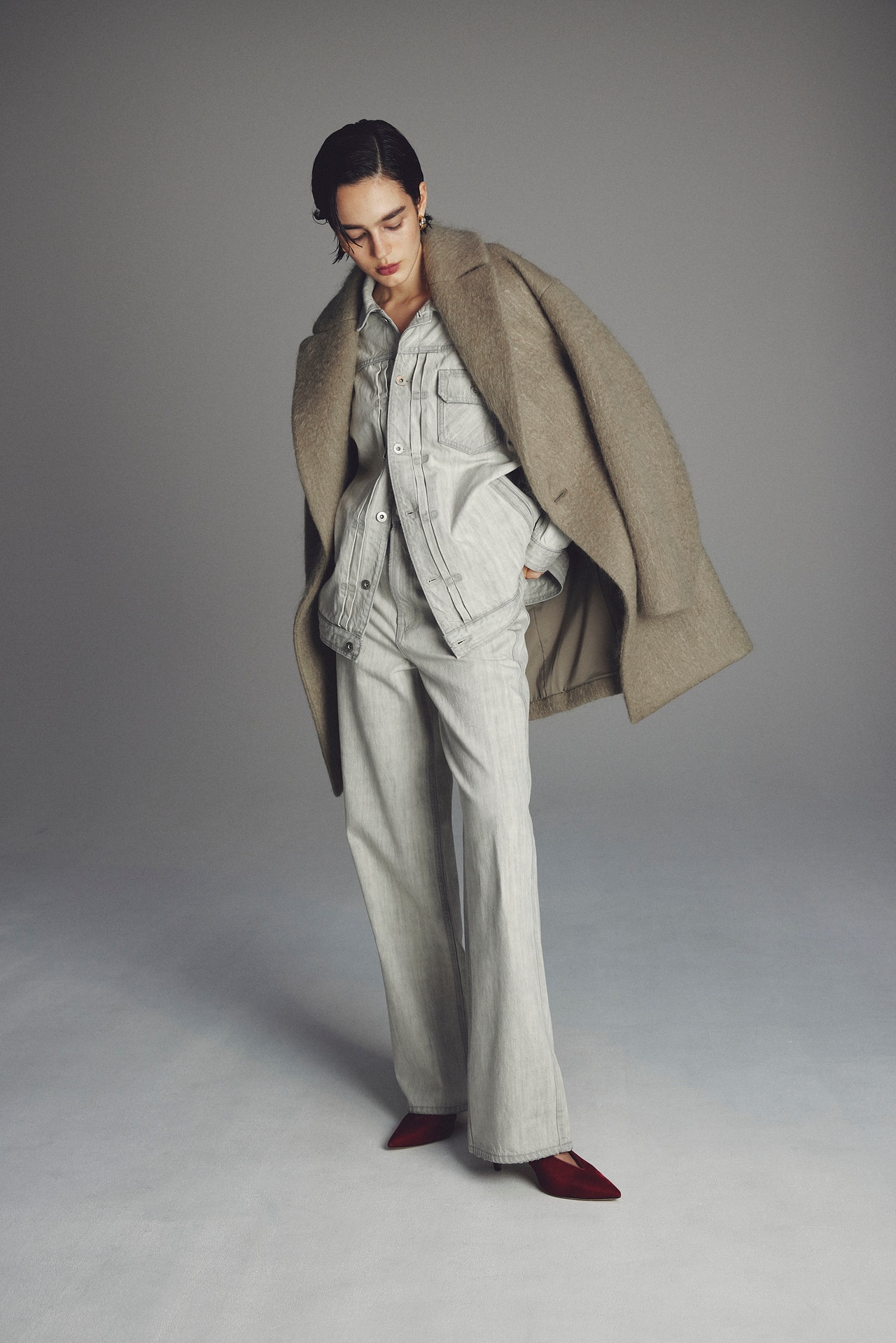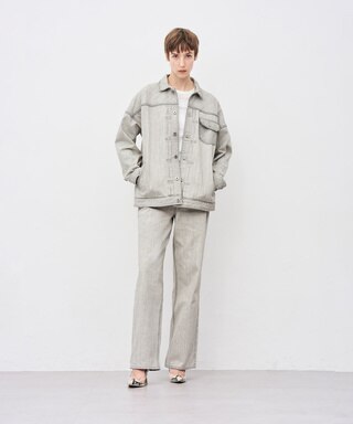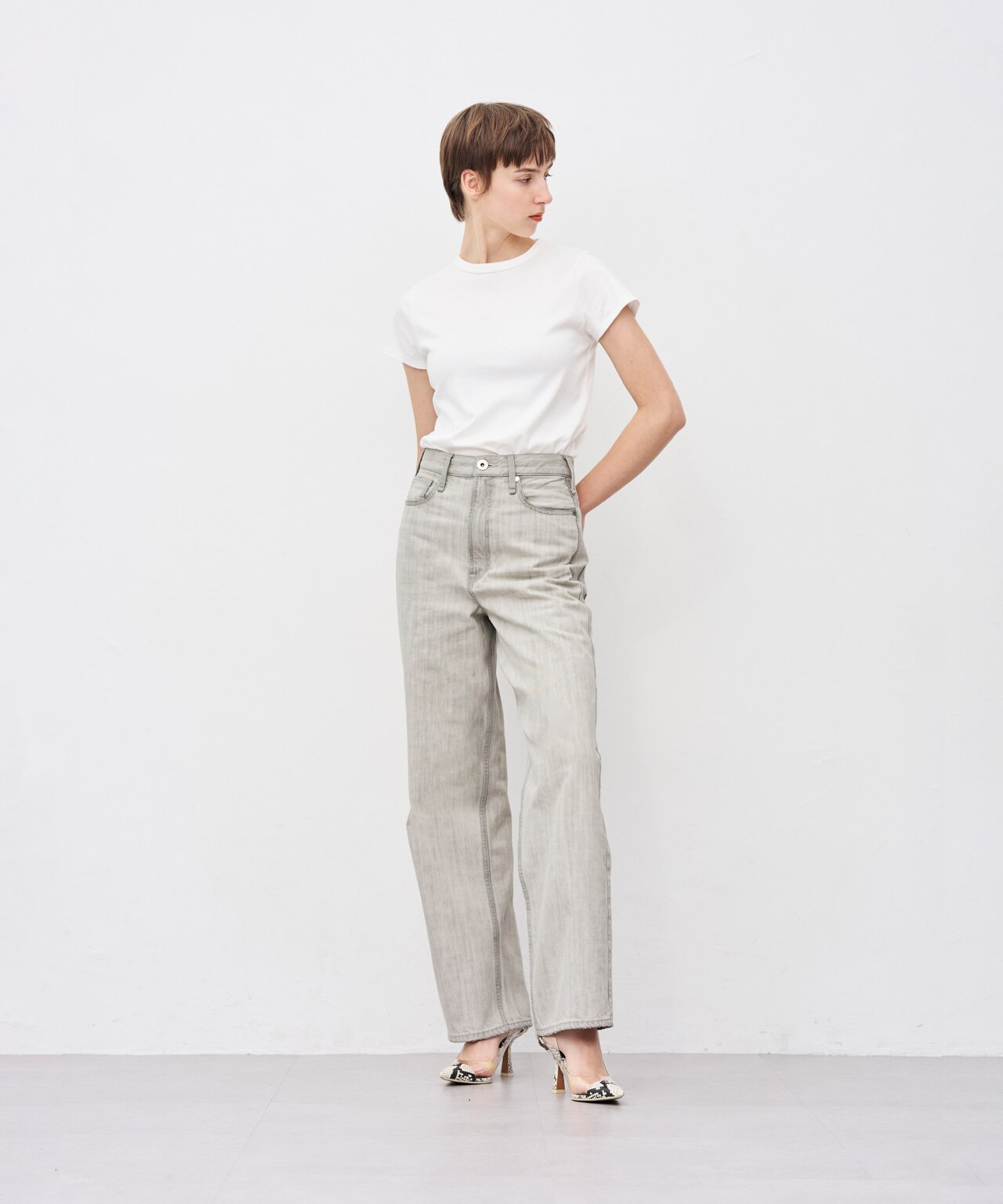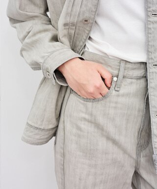 ホワイトとグレーの間のニュアンスカラーが特徴で、デニムならではのパッカリングが全体の立体感を出してくれます。