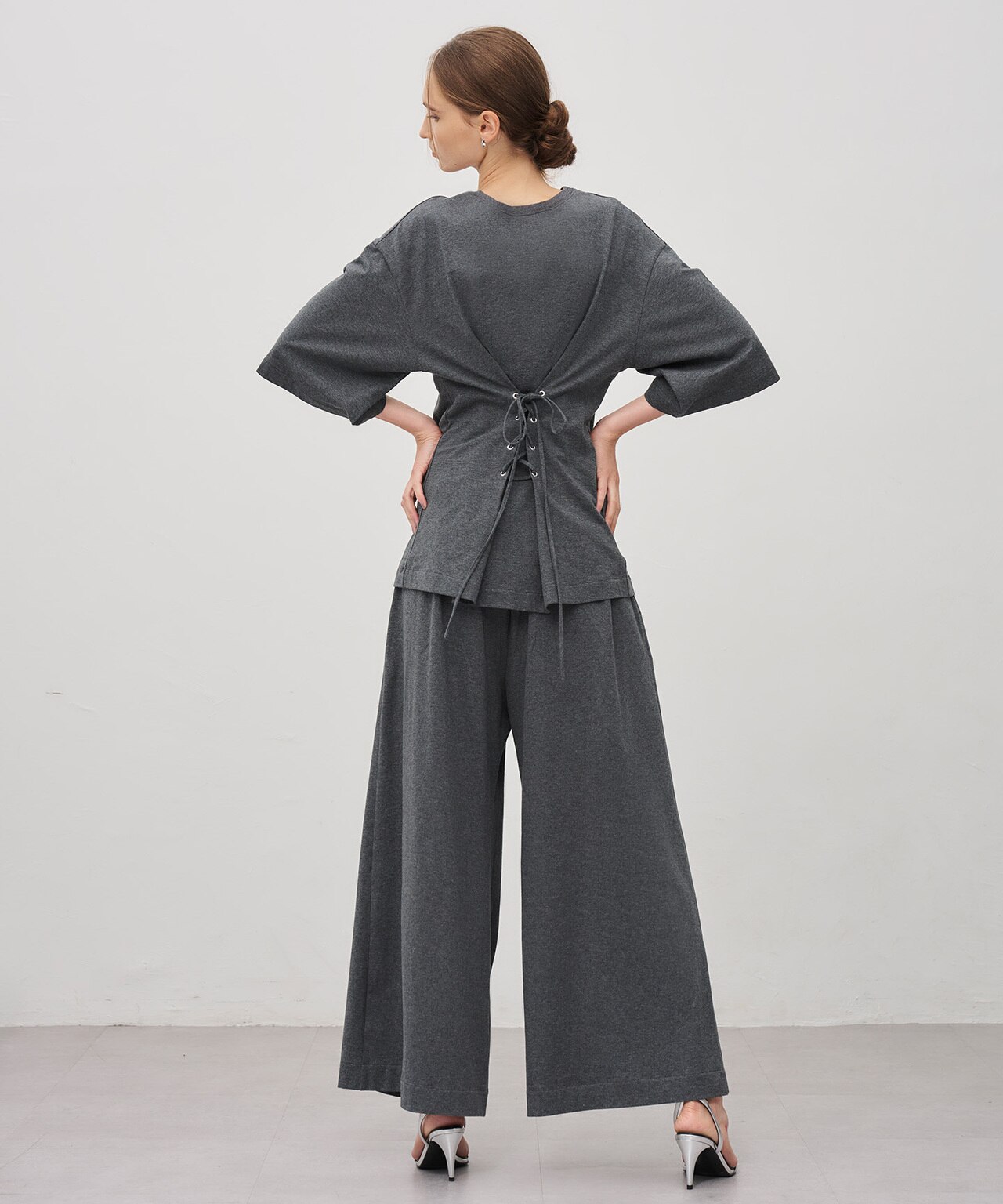 強撚糸をテレコ組織で編み上げた高ストレッチ素材です。畝の立体感がありフィットしたアイテムでも程よく身体になじみます。