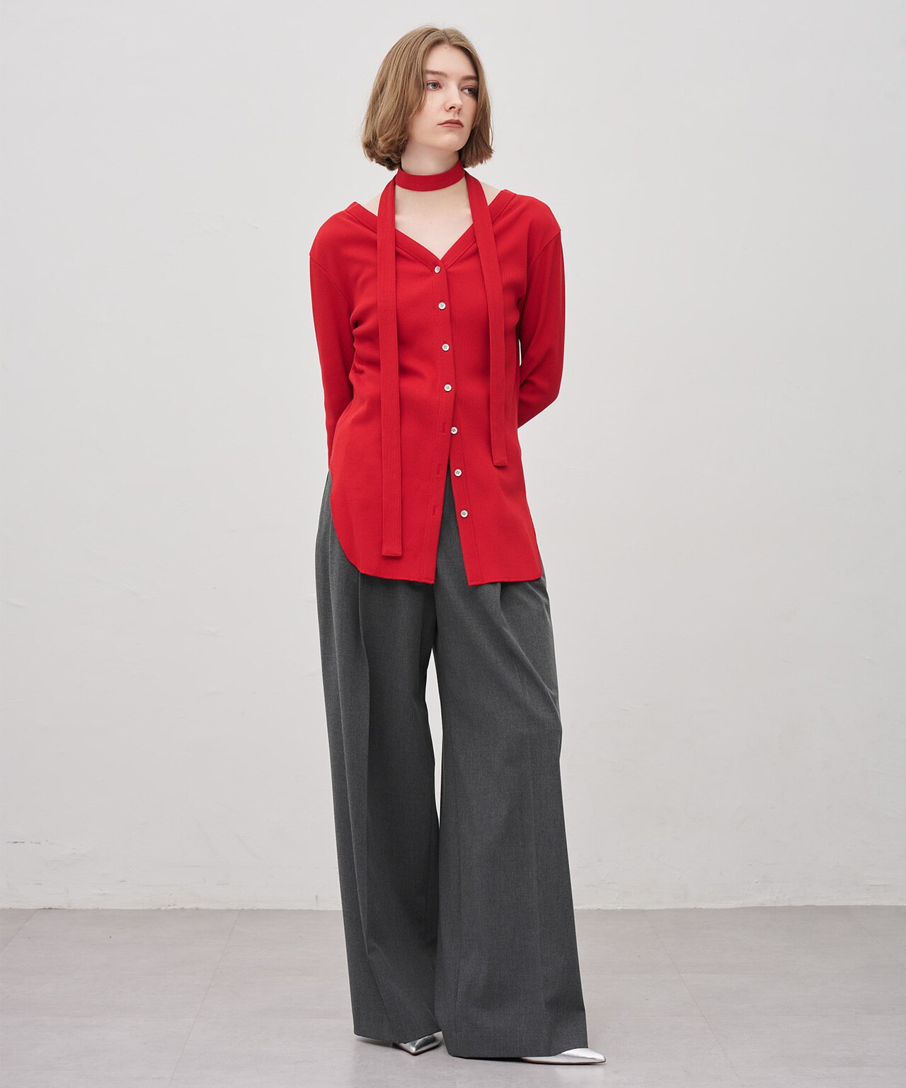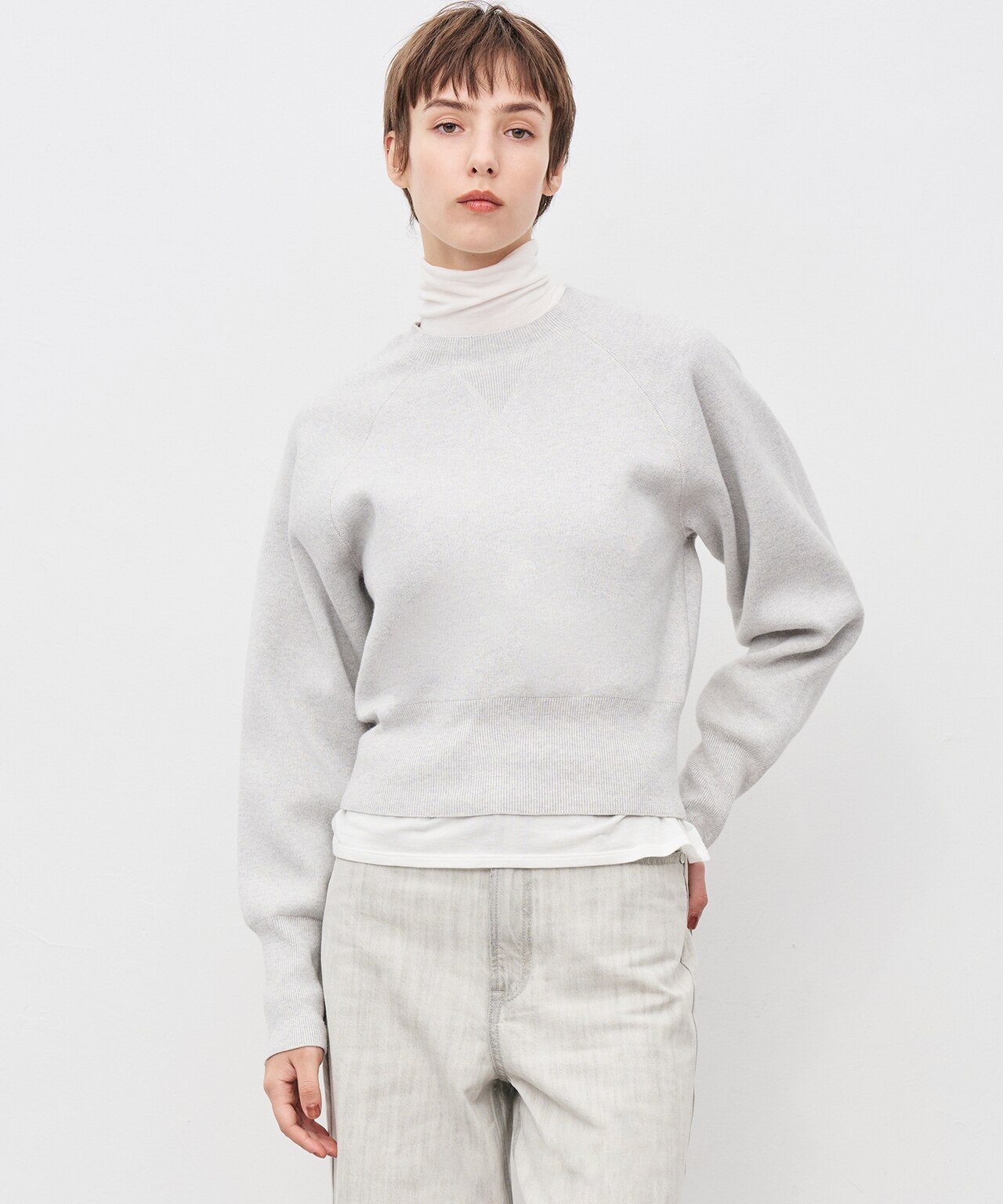 カシミヤ混のスムース編みで肉感がしっかりある素材です。柔らかく上質な肌触りと保温性が良く、温かみのある素材に仕上げています。